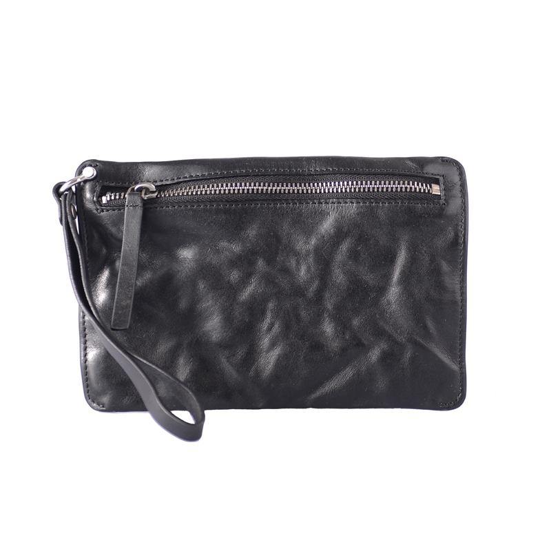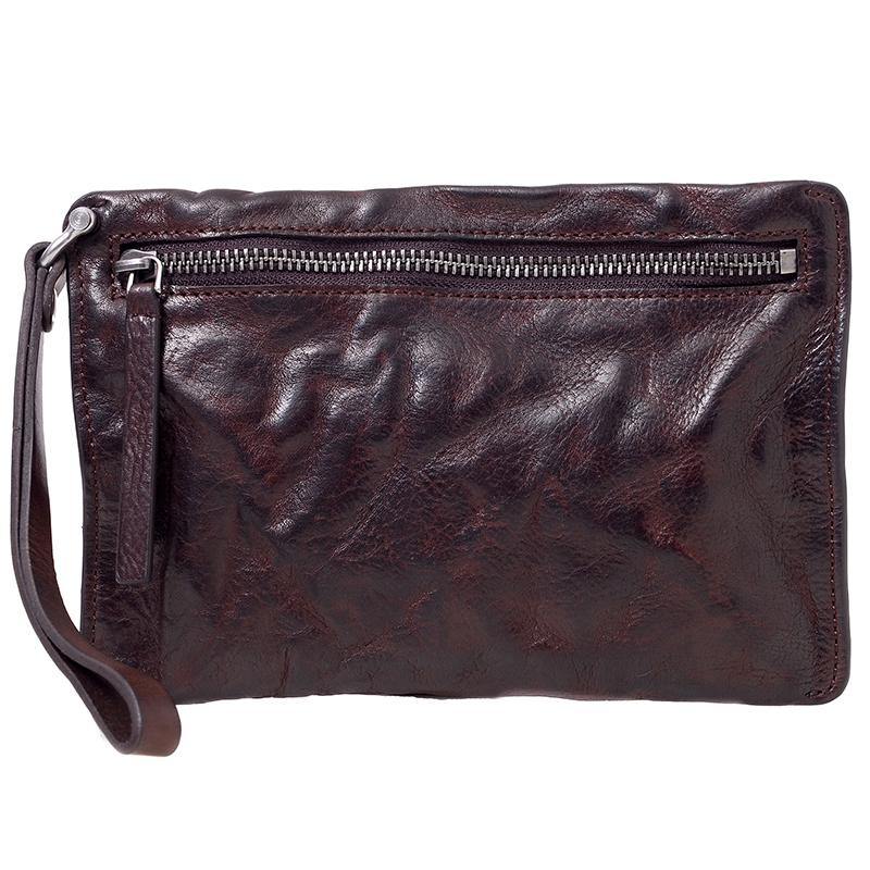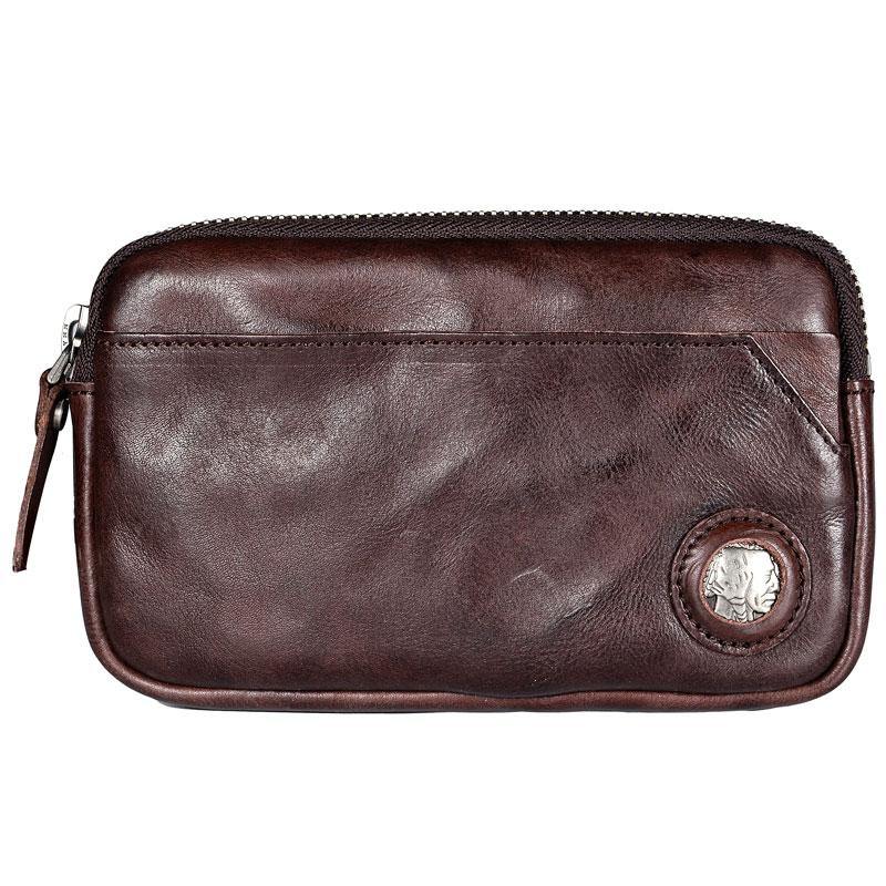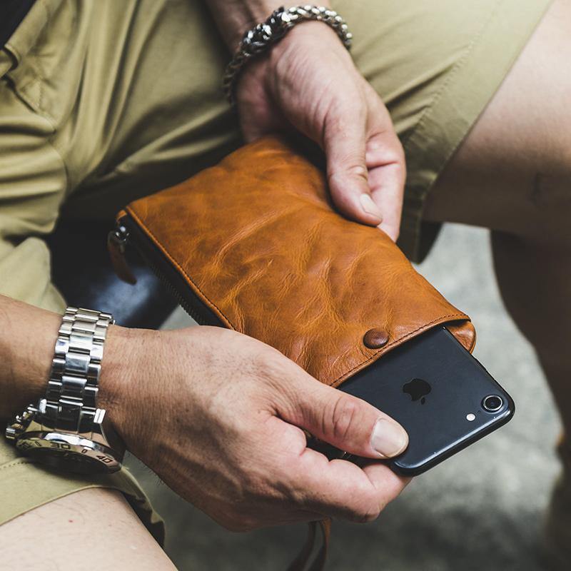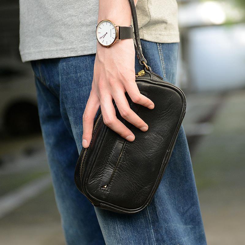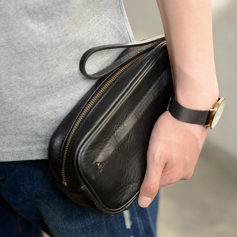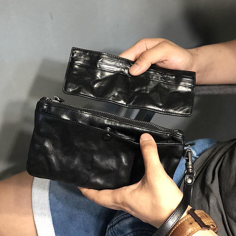 • Cool Black Leather Mens Wristlet Wallets Zipper Clutch Wallet Coffee Wristlet Vintage Clutch Purse For Men