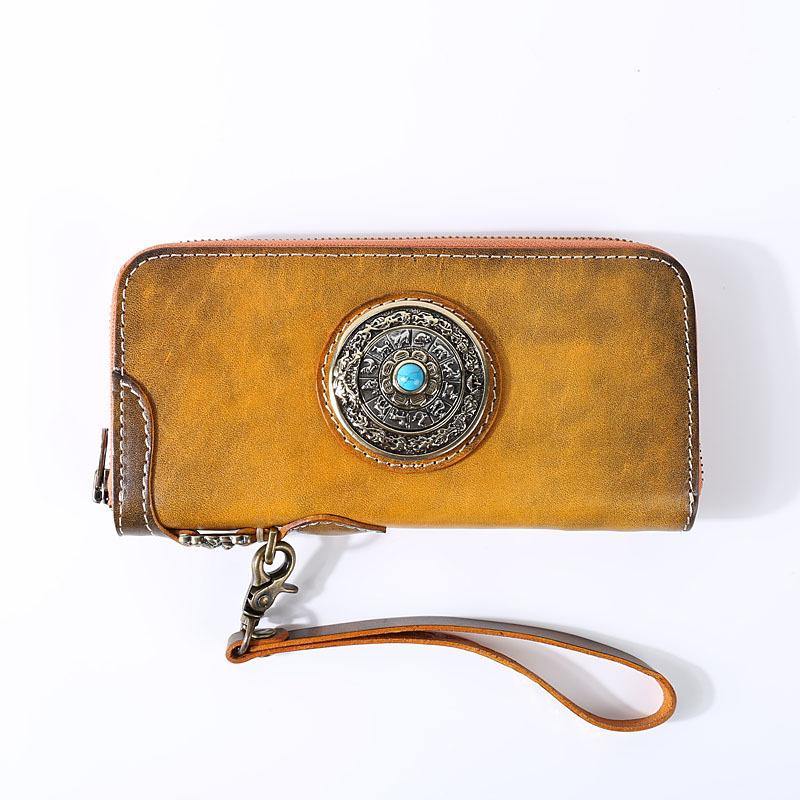 • Coffee Cool Leather Mens Long Wallet Large Zipper Wallets Brown Wristlet Clutch Vintage Clutch Purse For Men