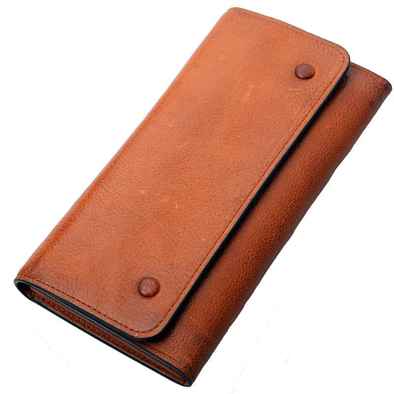 • Vintage Green Leather Mens Bifold Long Wallet Brown Wristlet Wallet Brown Clutch Biker Wallet Men