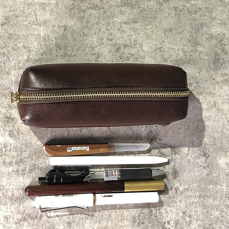 • Simple Handmade Leather Womens Makeup Case Black Pencil Case Small Makeup Purse For Men