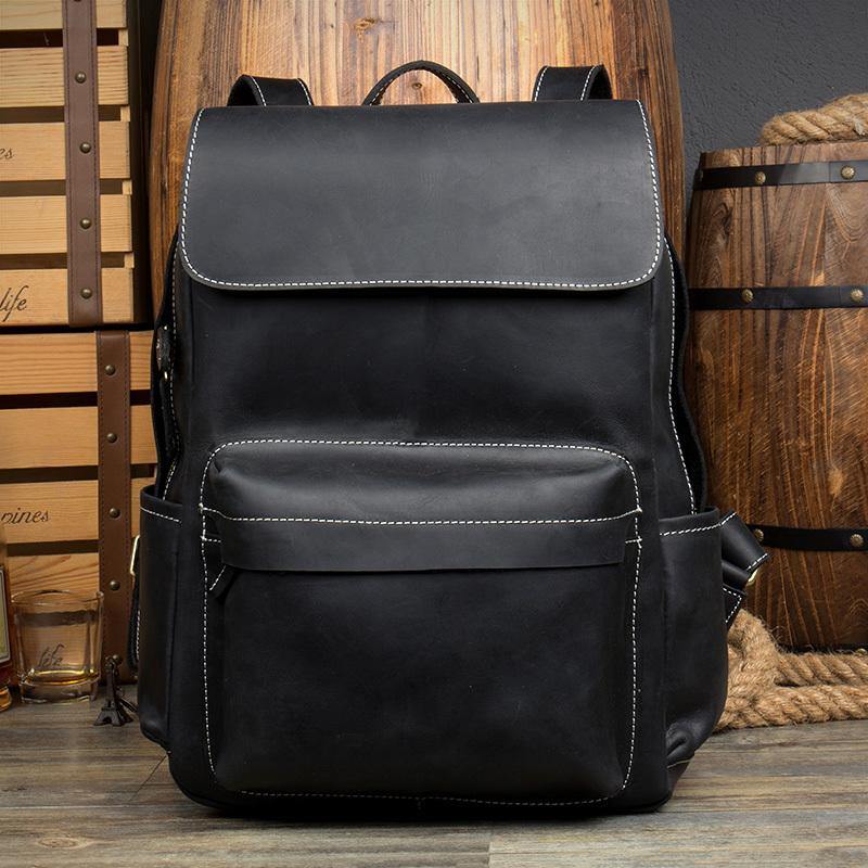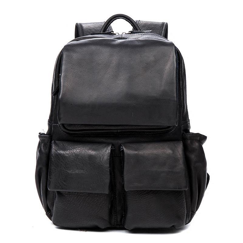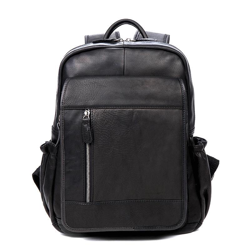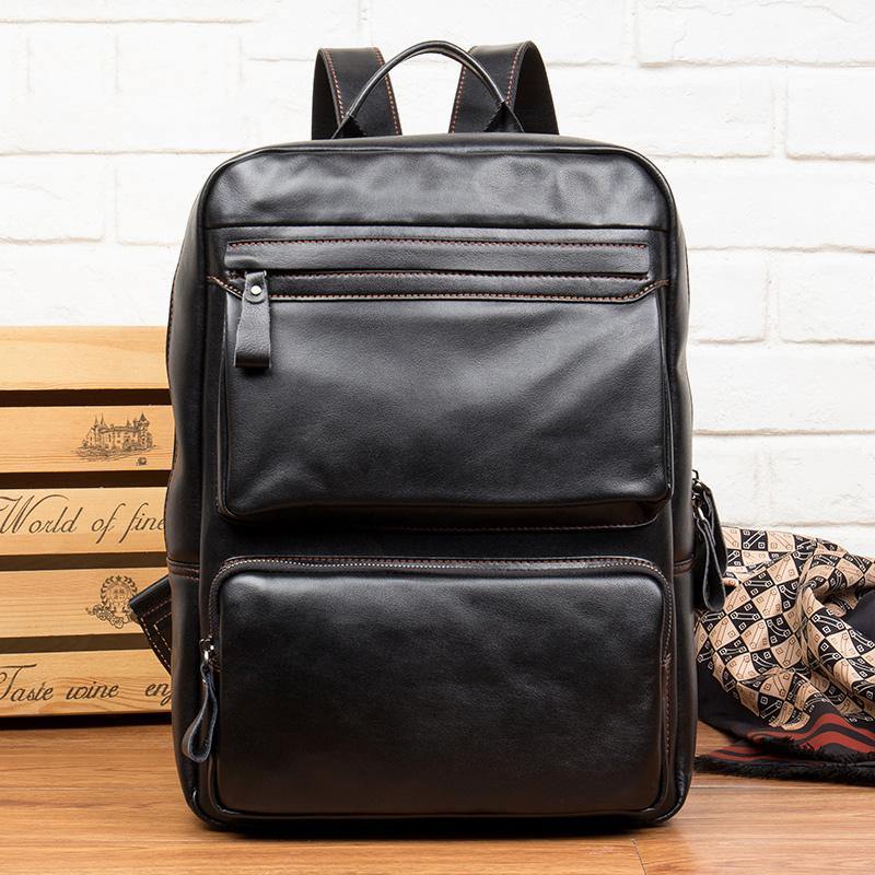 • Cool Black Mens Leather 14 inches Computer Backpack College Backpacks School Backpack for men