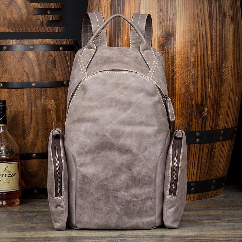• Gray Fashion Mens Leather 12-inch Computer Backpacks Cool Travel Backpacks School Backpack for men