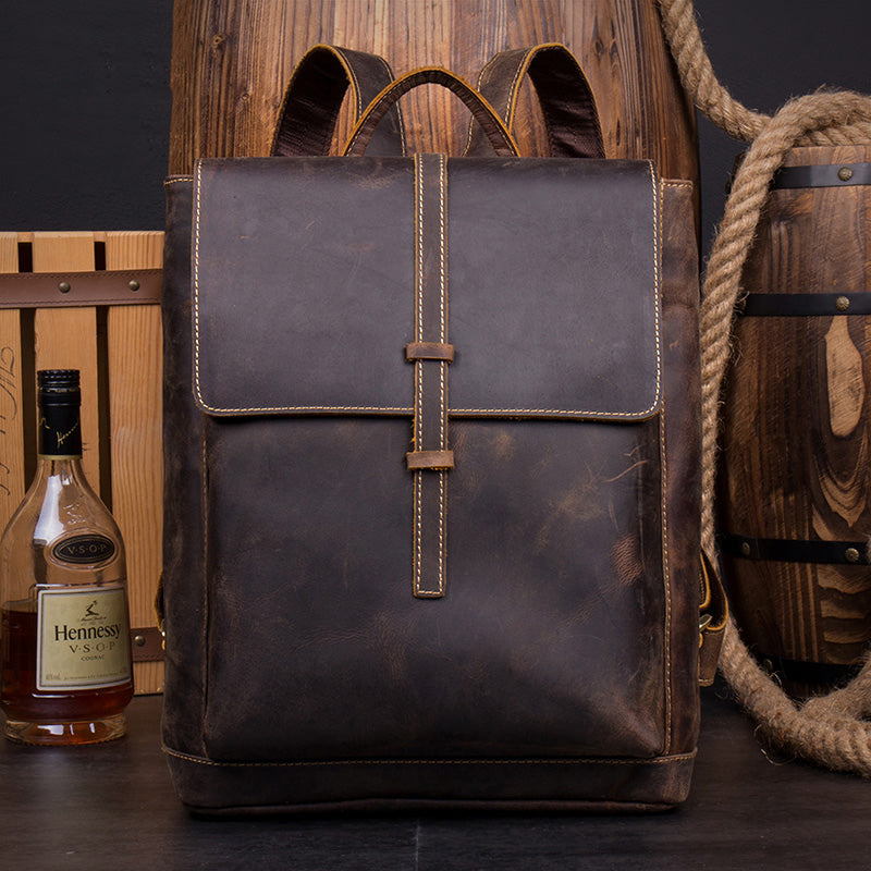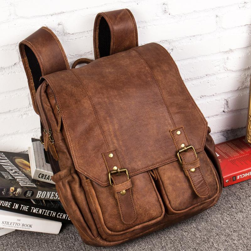 • Brown Fashion Mens Leather 15-inch Computer Backpacks Cool Travel Backpacks College Backpack for men