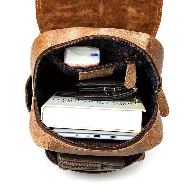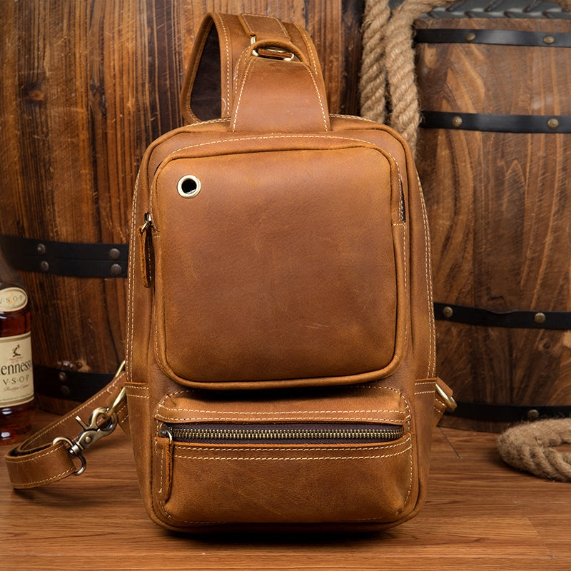 • Casual Brown Mens Leather Large Sling Bag One Shoulder Pack Chest Bag Sling Backpack for men