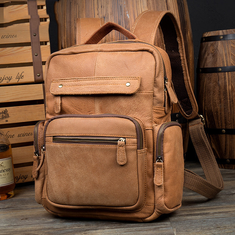• Khaki Fashion Mens Leather Small Travel Backpacks Cute College Backpacks School Backpack for men