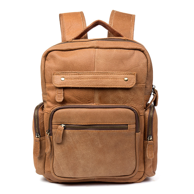 • Casual Khaki Leather Mens 13 inches School Backpacks Tan Computer Backpack for Men