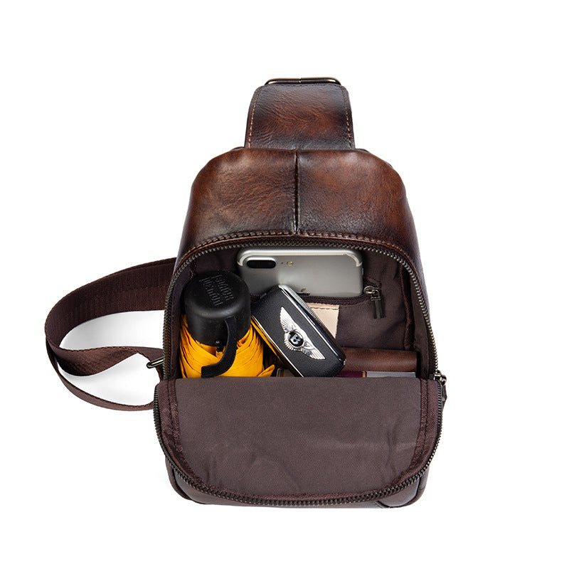 Leather Men's Sling Bag Cool Black Gray Sling Packs Sling Crossbody Pack For Men