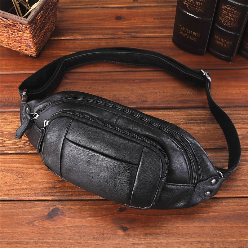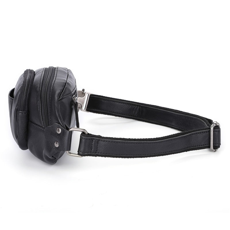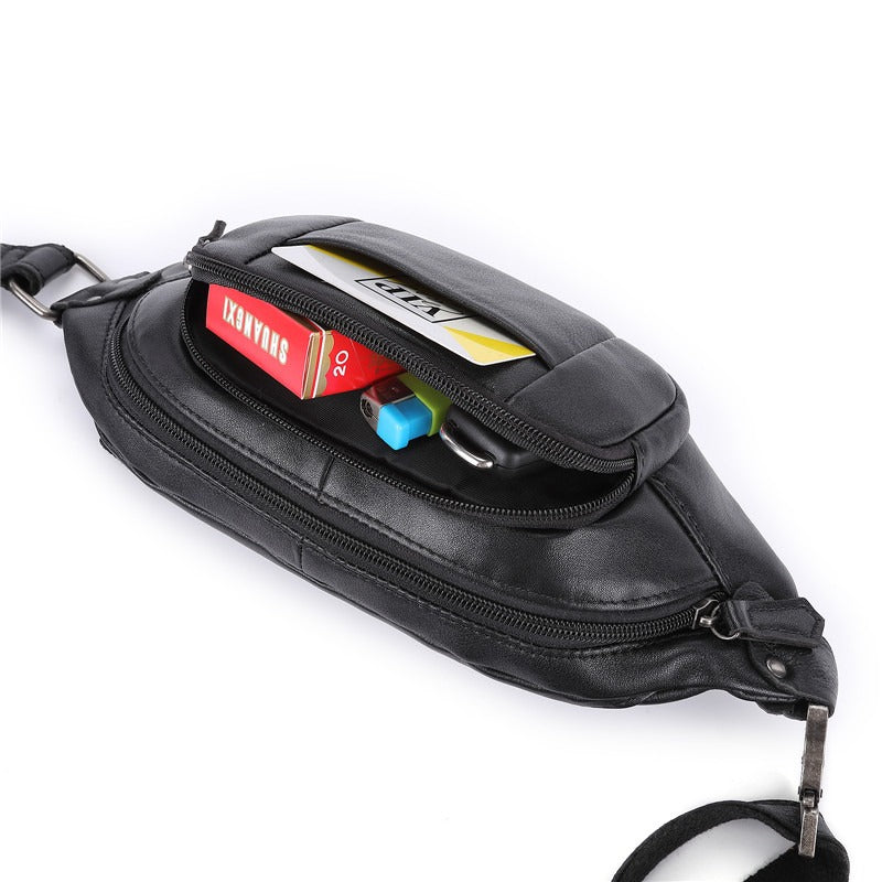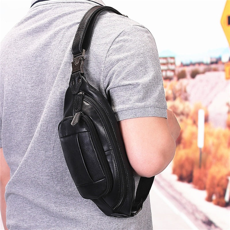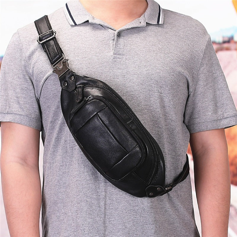 Black Leather Mens Fanny Pack Hip Packs Sling Bag Sling Pack Waist Bags for Men