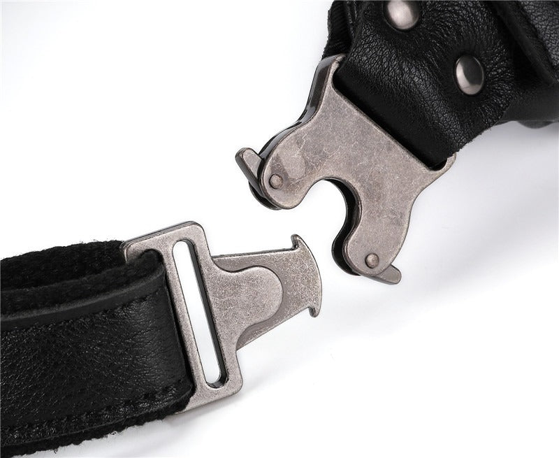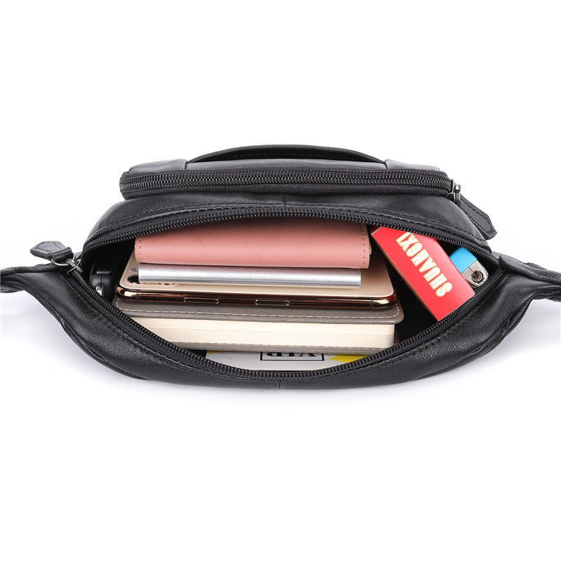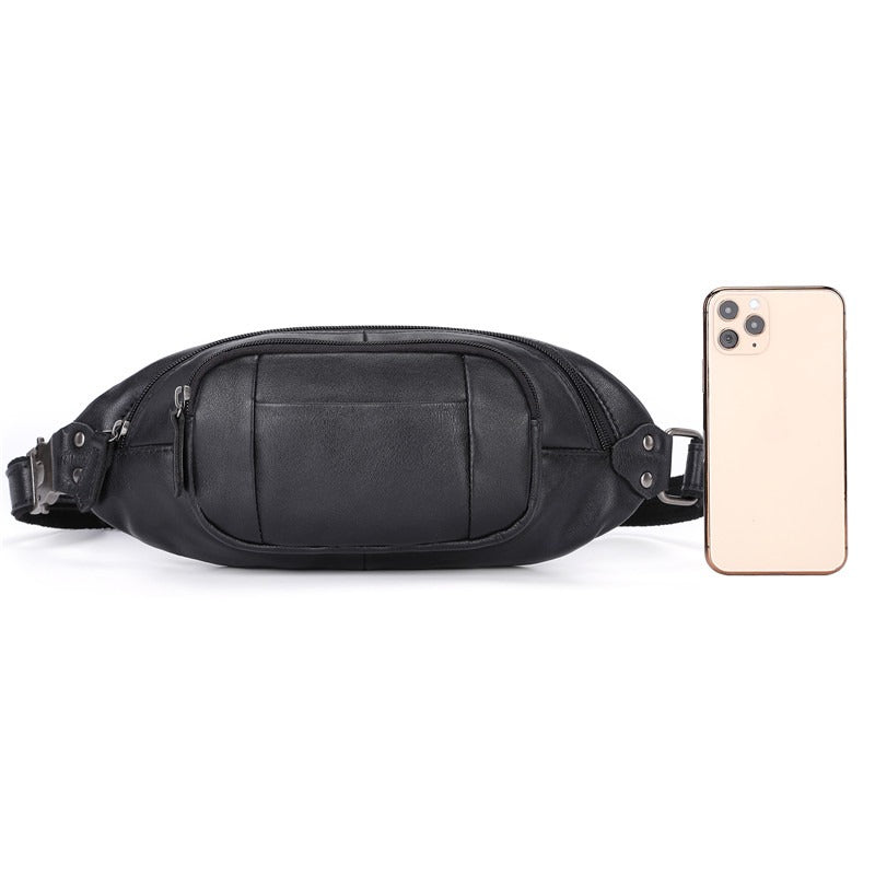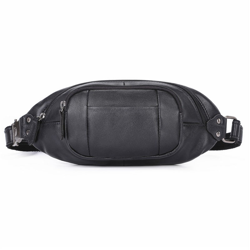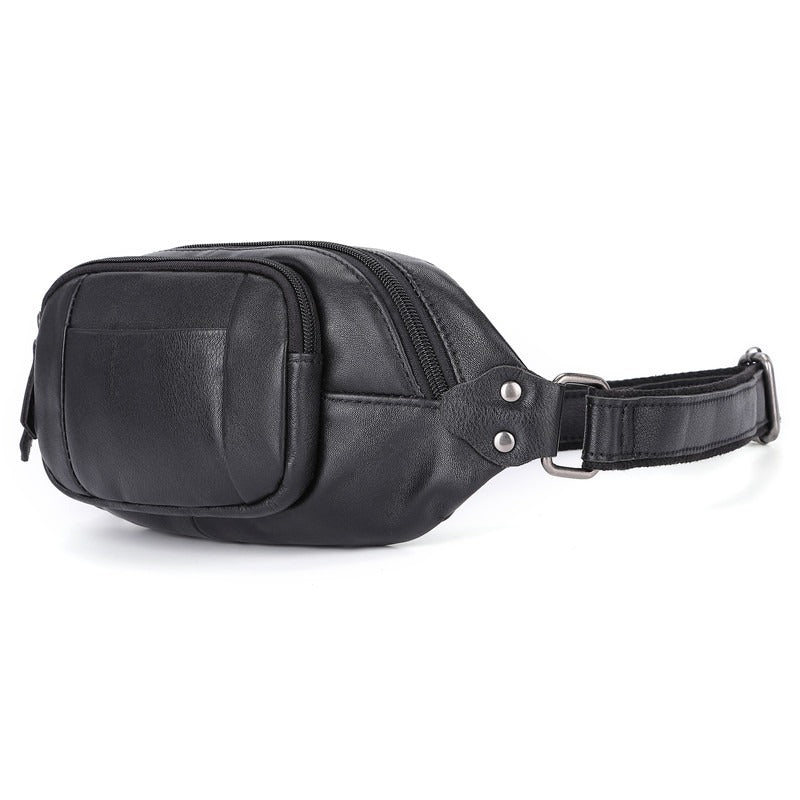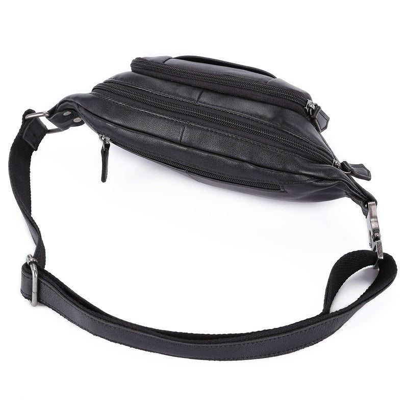 Black Leather Mens Fanny Pack Hip Packs Sling Bag Sling Pack Waist Bags for Men