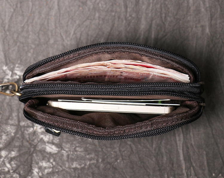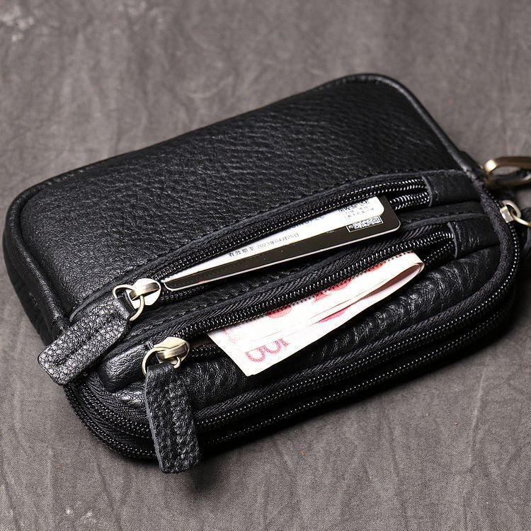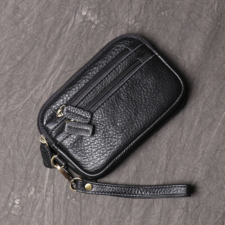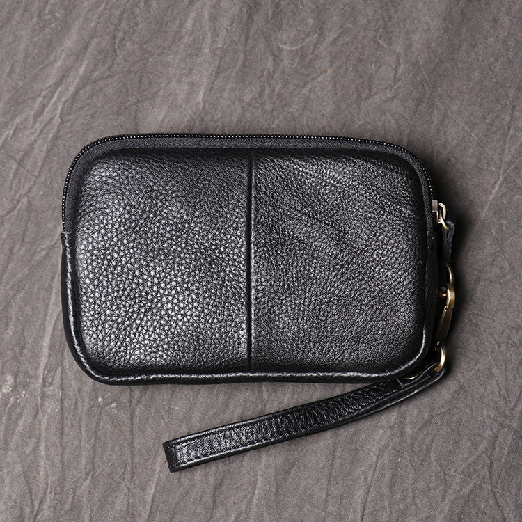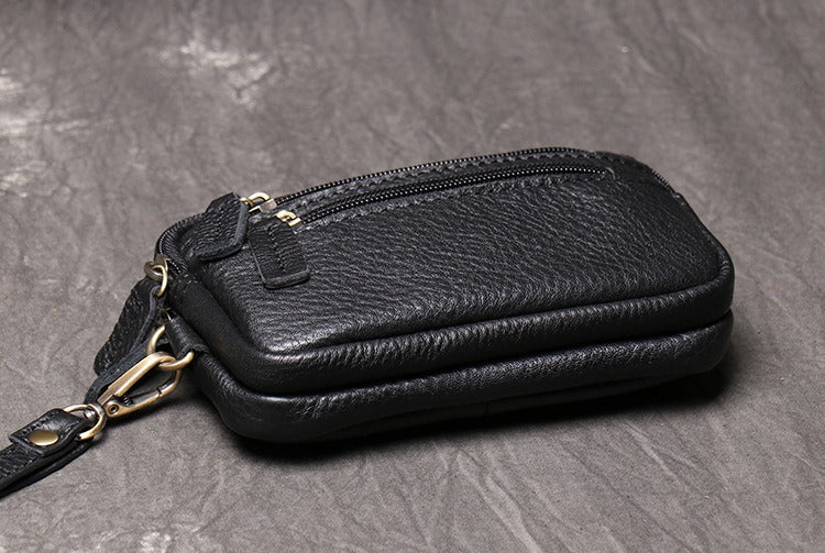 Black Leather Men's Zipper Clutch Wallet Long Wallet Phone Purse for Men Wristlet Wallet