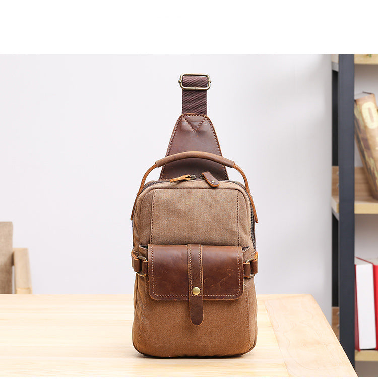Canvas Leather Mens Khaki Chest Bag One Shoulder Backpack Green Sling Bag for Men