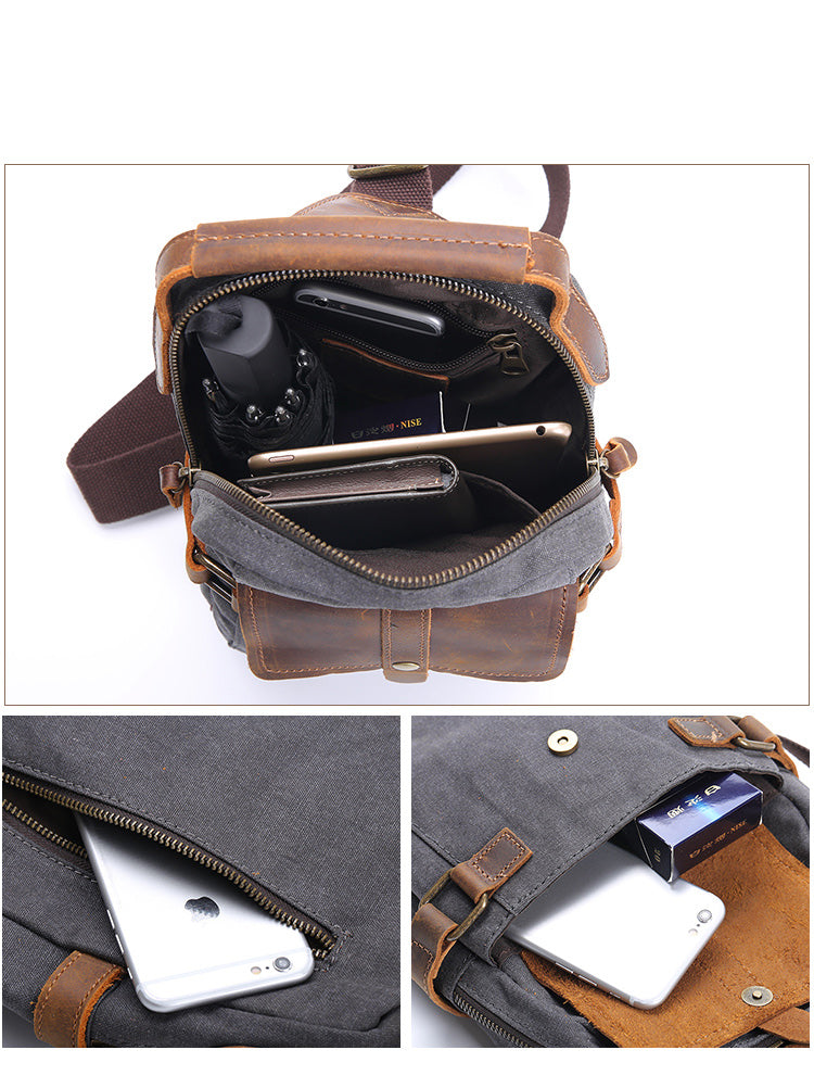 Style: Canvas Leather Mens Gray Chest Bag One Shoulder Backpack Green Sling Bag for Men