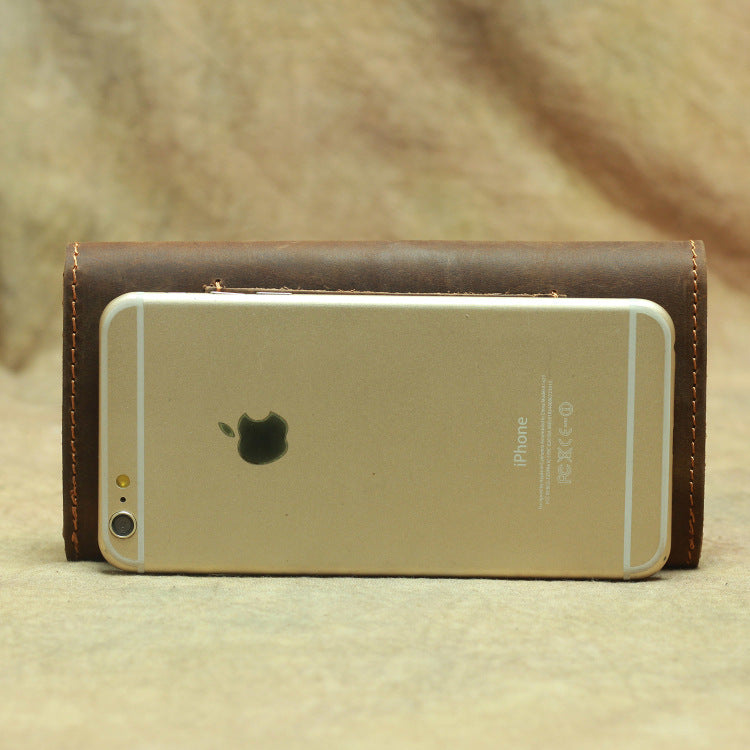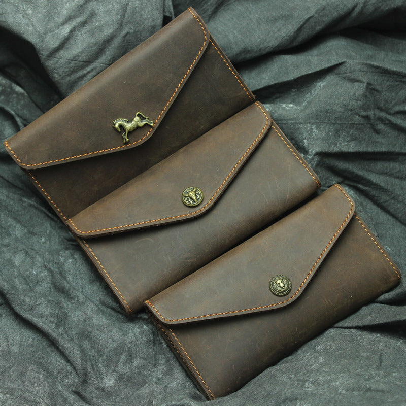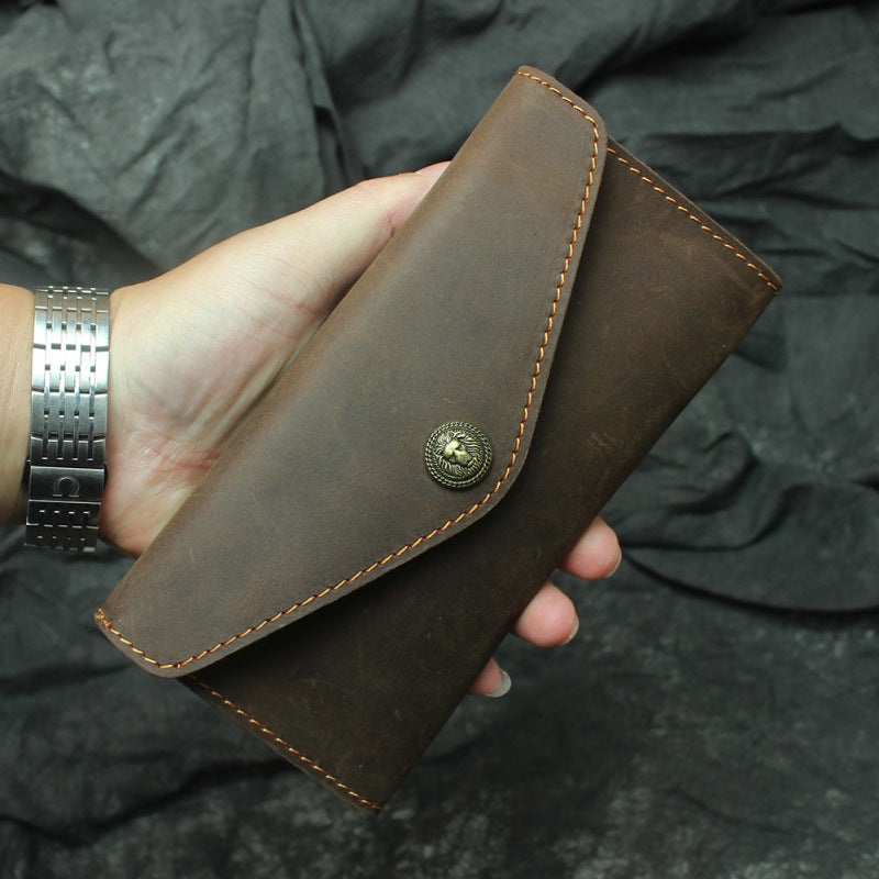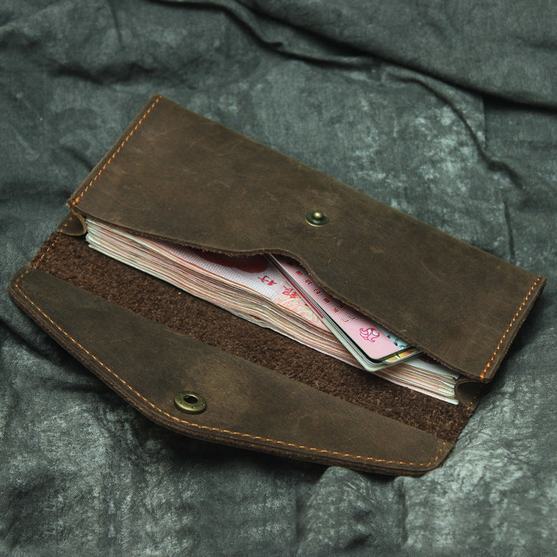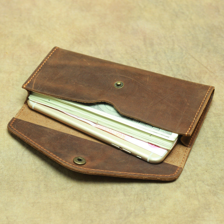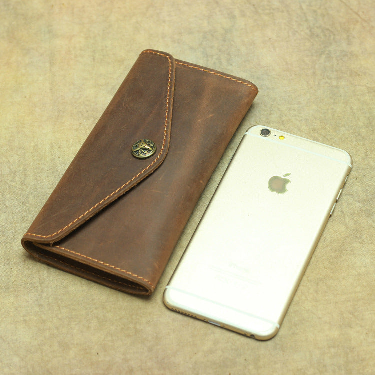 Vintage Mens Leather Long Wallet Envelope Long Wallet Phone Clutch Wallet For Men