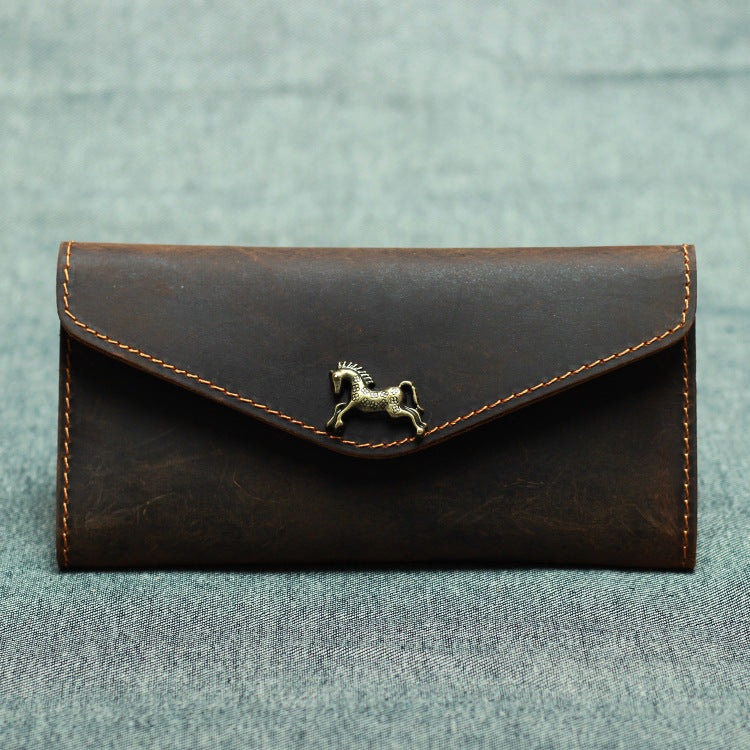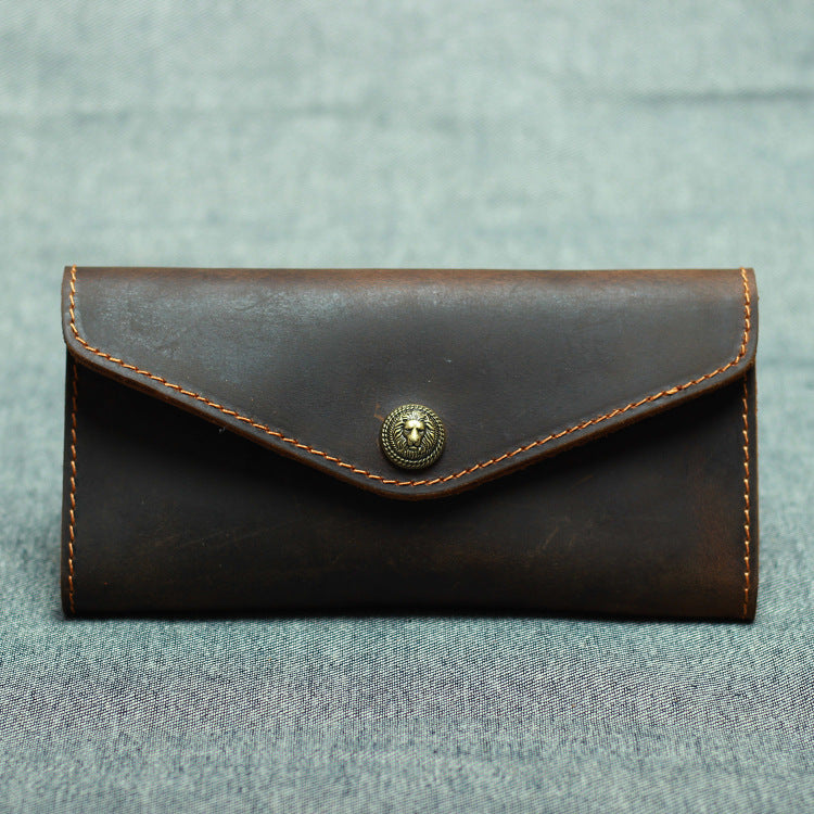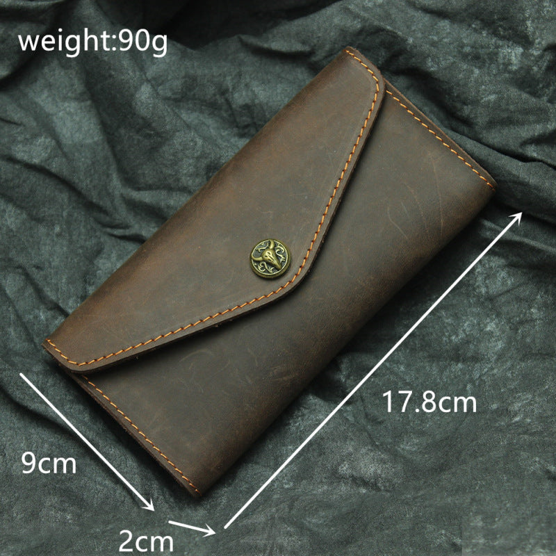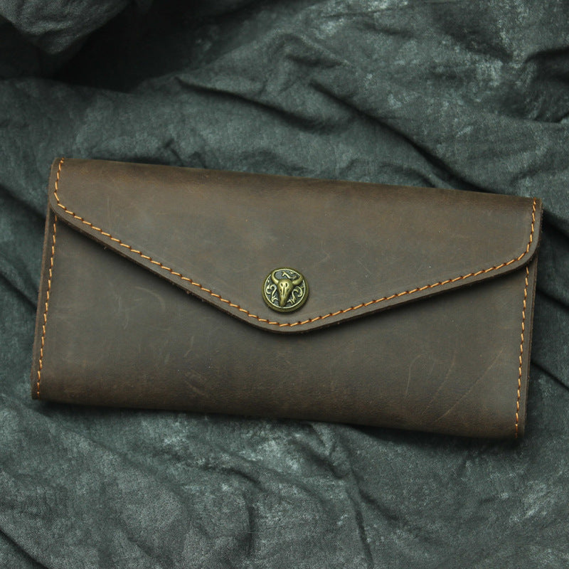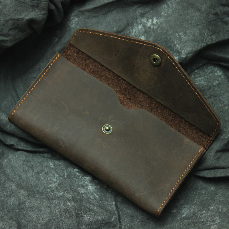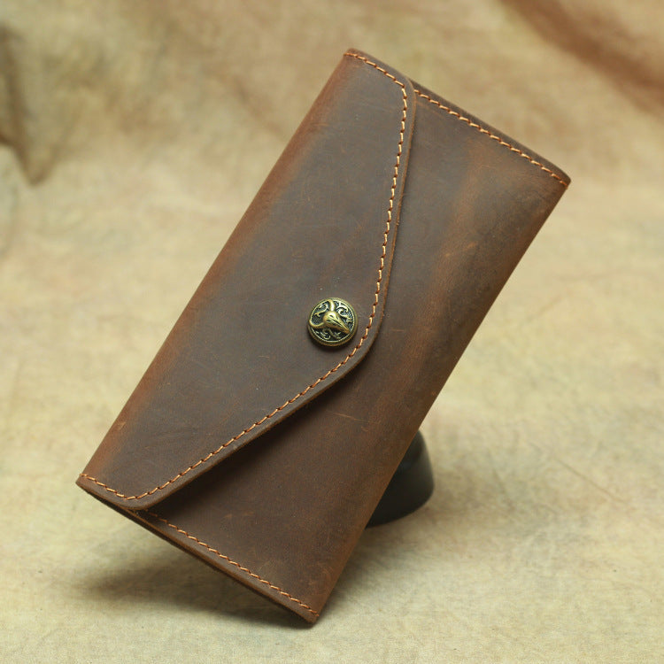 Vintage Mens Leather Long Wallet Envelope Long Wallet Phone Clutch Wallet For Men