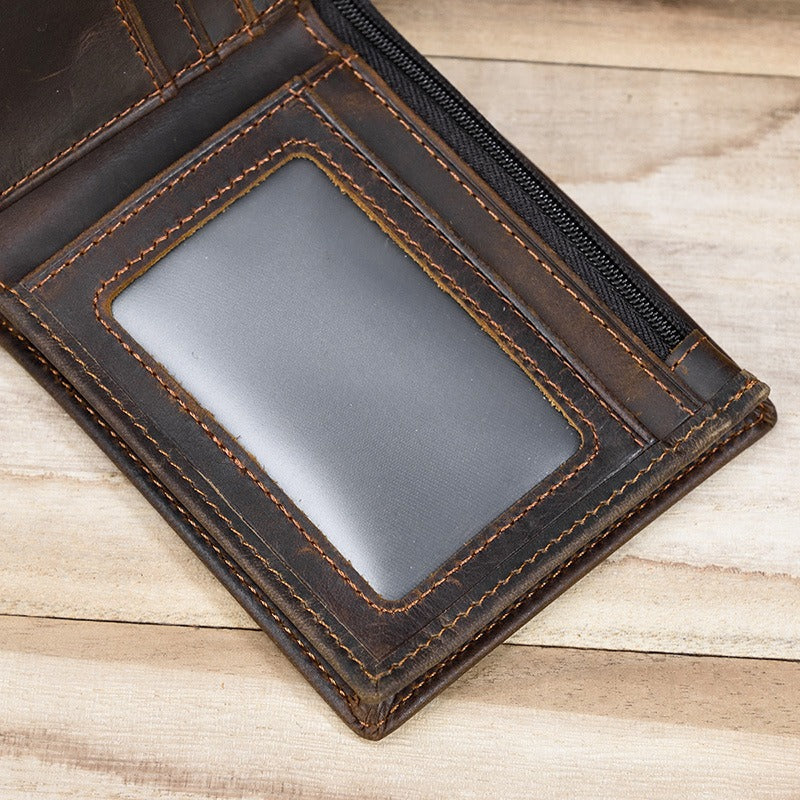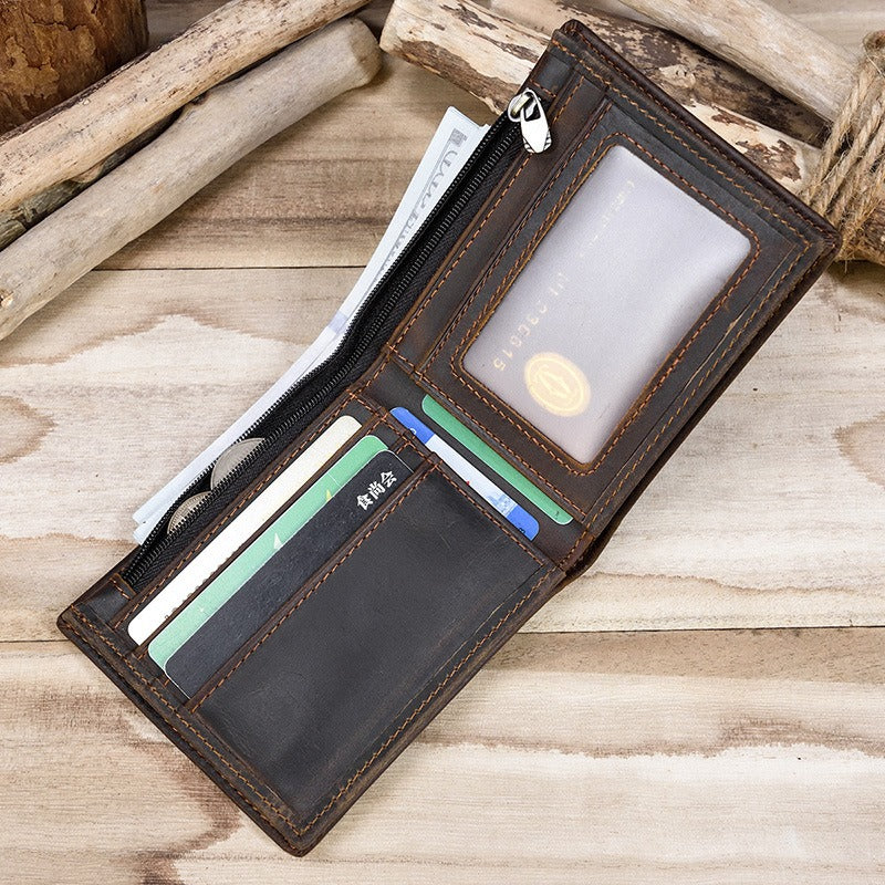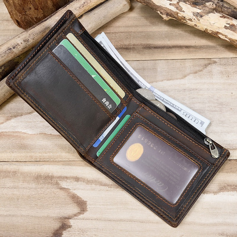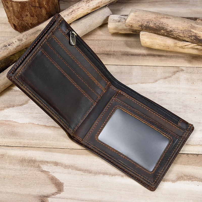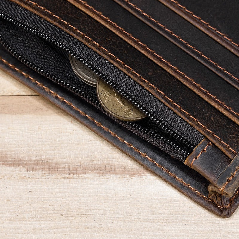 Design: Coffee Bifold Leather Mens Wallet Best Slim Wallet Billfold Wallet Driver's License Wallet for Men