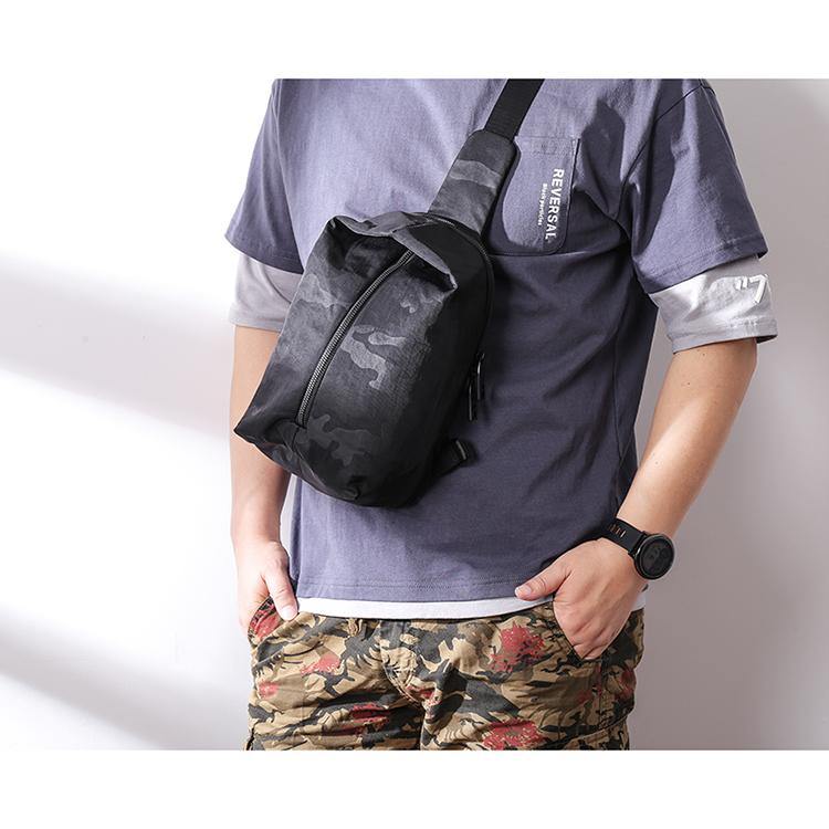 Cool Black Nylon Men's Sling Bag Camouflage Chest Bag Nylon One shoulder Backpack Sports Bag For Men