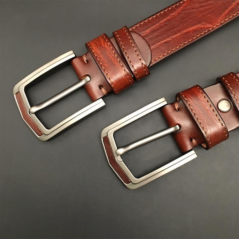 Style: Cool Handmade Dark Red Brown Leather Mens Belt Light Red Brown Leather Belt for Men