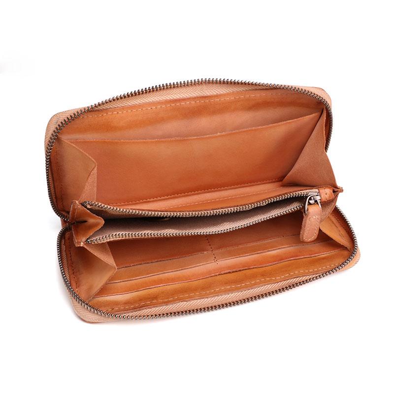 Design: Cool Tan Mens Leather Long Wallet Braided Zipper Long Wallet for Men