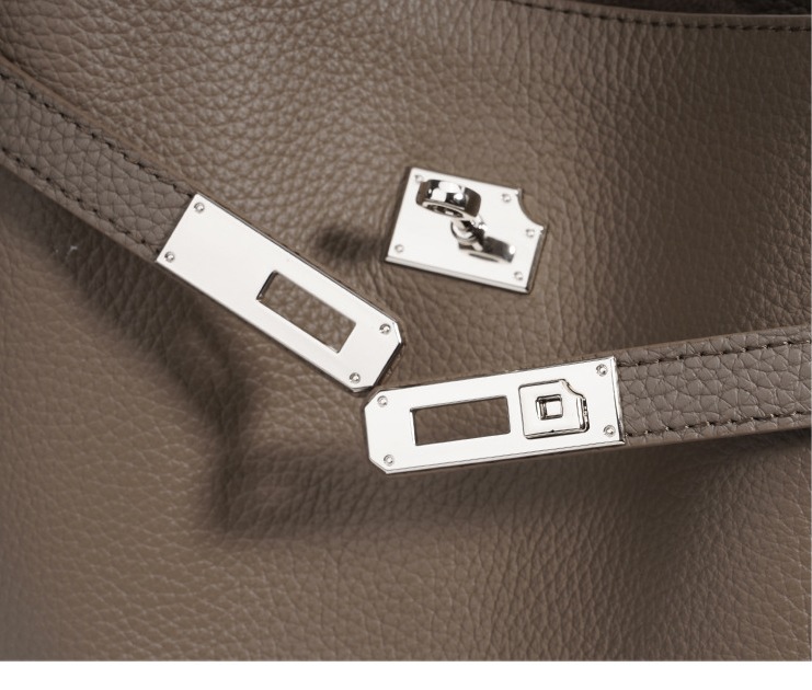 這皮料是柔軟的二層牛皮,肌理感十足,而且是特別定制的皮胚,觸感彈韌又舒適;有這麼好的皮料作基礎,包包的形狀自然,線條挺括又流暢。