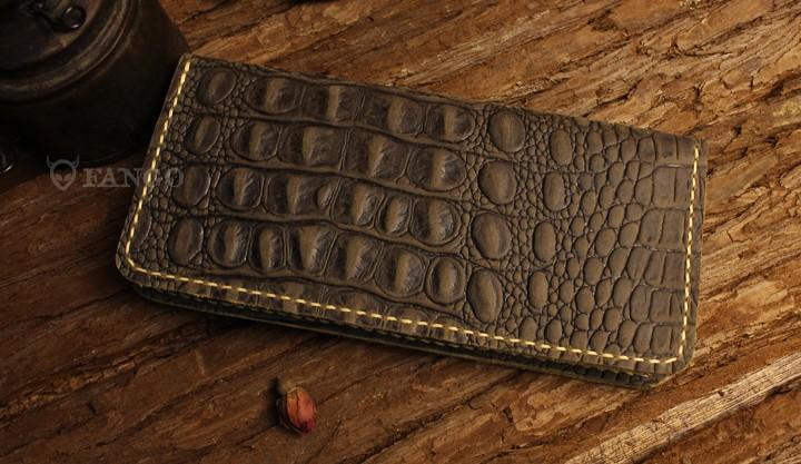 Design: Handmade Leather Alligator Pattern Mens Cool Travel Long Wallet Card Holder Card Slim Clutch Wallets for Men