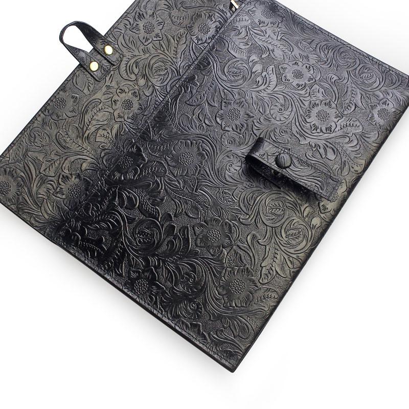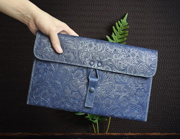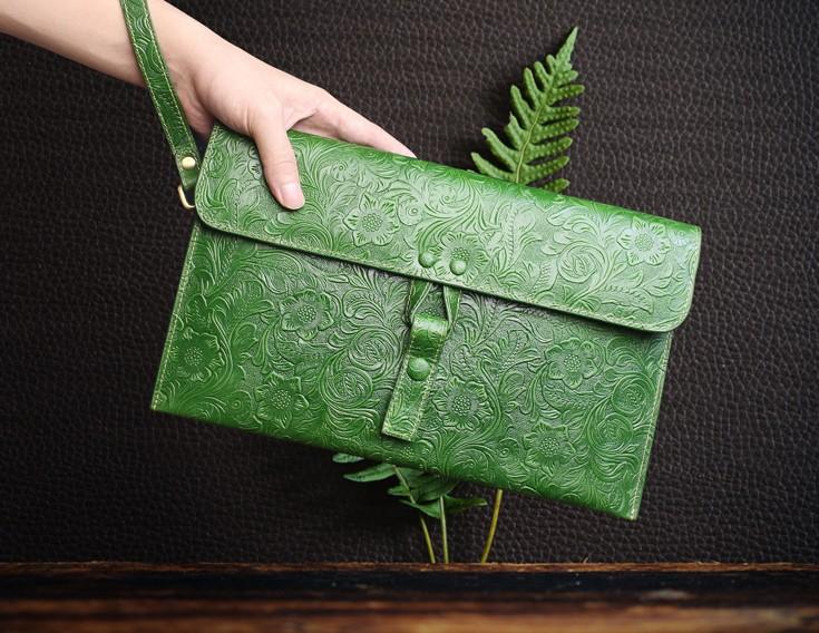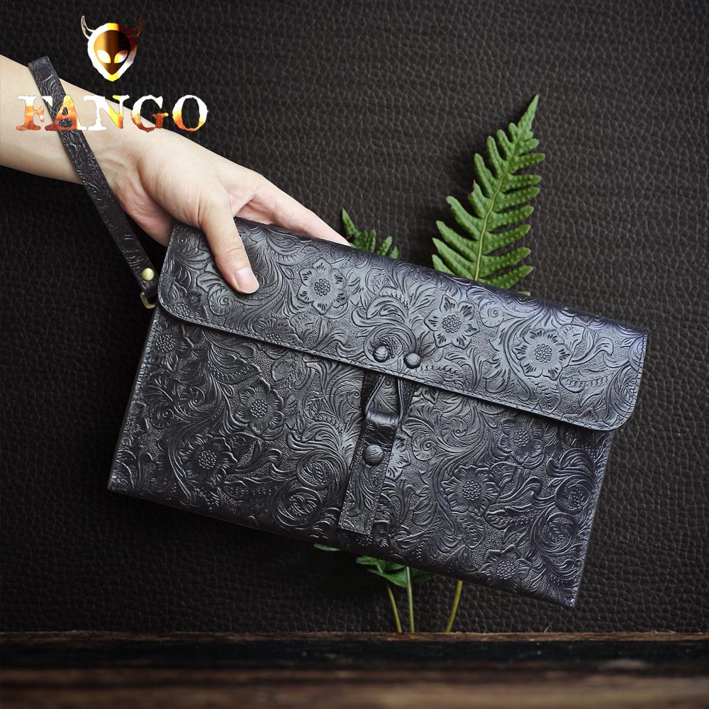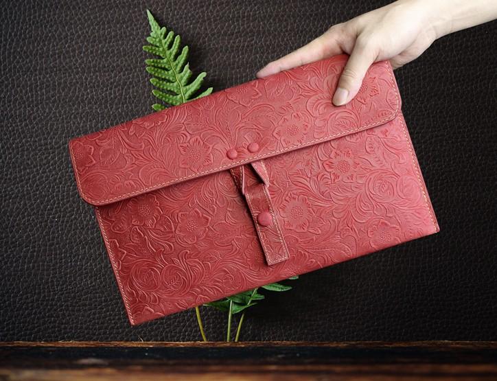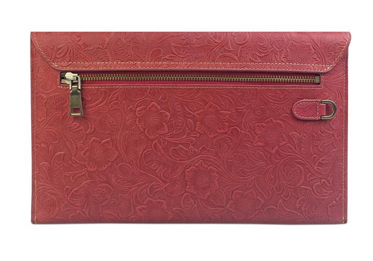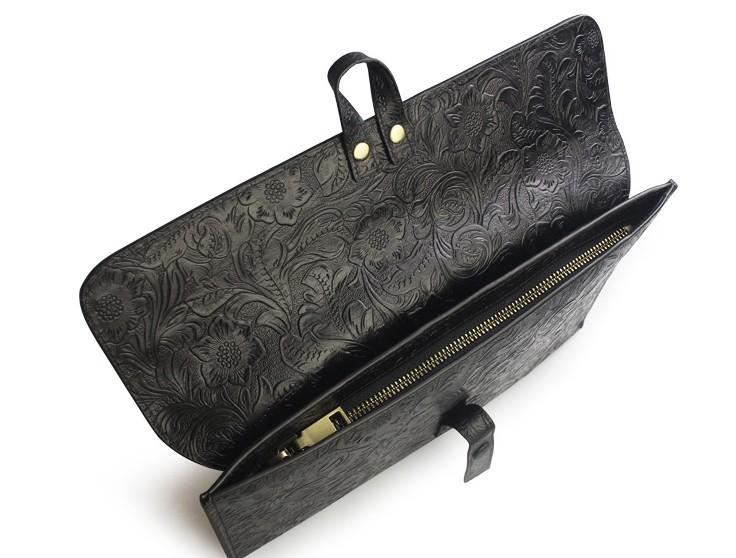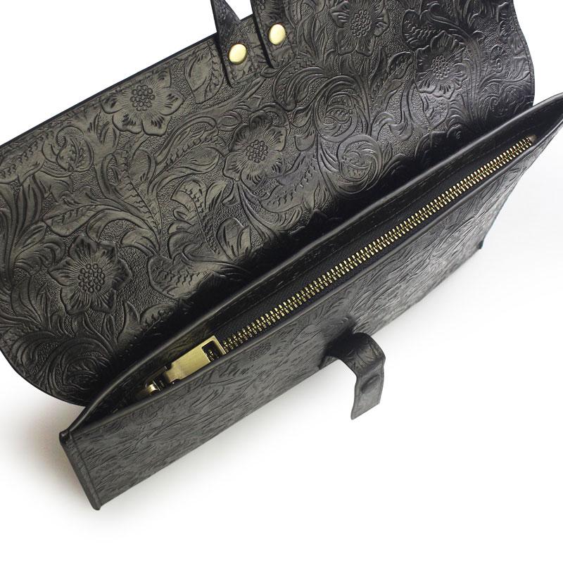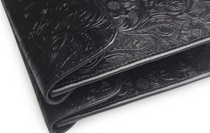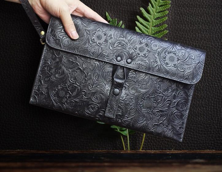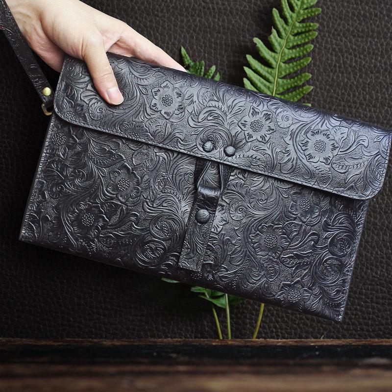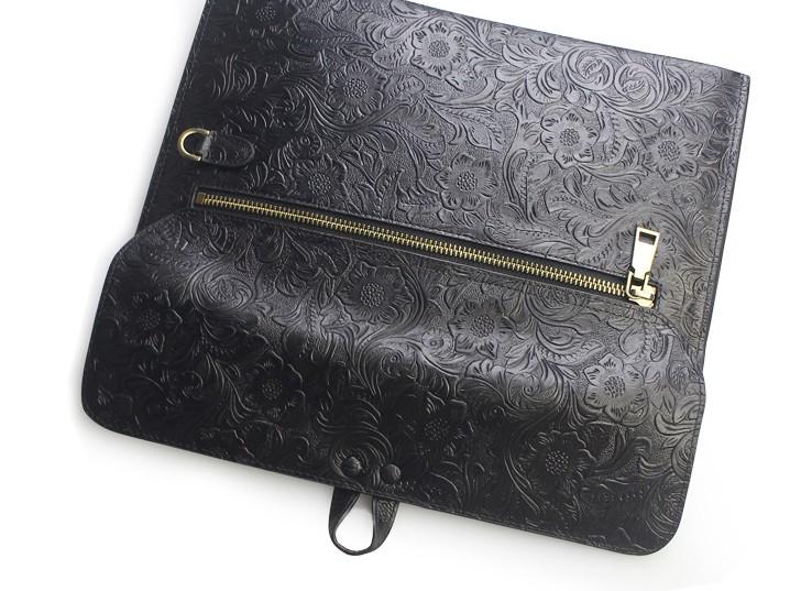 Handmade Leather Floral Tooled Mens Clutch Cool Slim Wallet Zipper Clutch Wristlet Wallet for Men