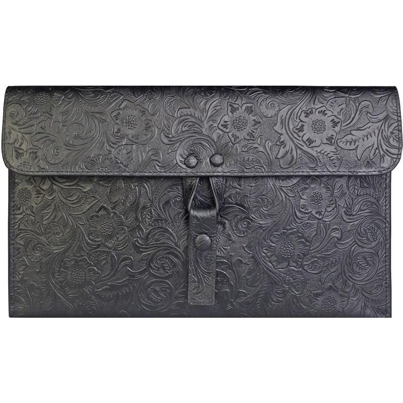 Design: Handmade Leather Floral Tooled Mens Clutch Cool Slim Wallet Zipper Clutch Wristlet Wallet for Men