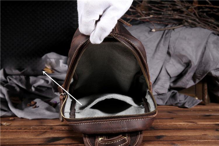Handmade Leather Mens Cool Chest Bag Sling Bag Crossbody Bag Travel Bag Hiking Bag for men