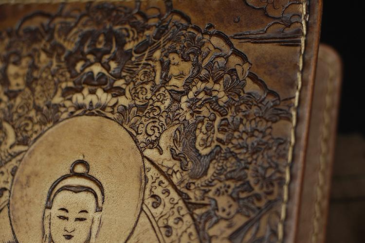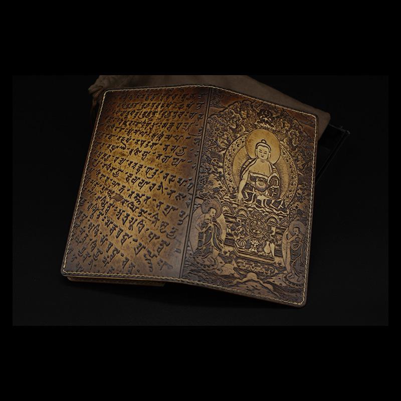 Handmade Leather Tooled Shakya Muni Buddhism Mens Long Wallet Cool Leather Wallet Clutch Wallet for Men