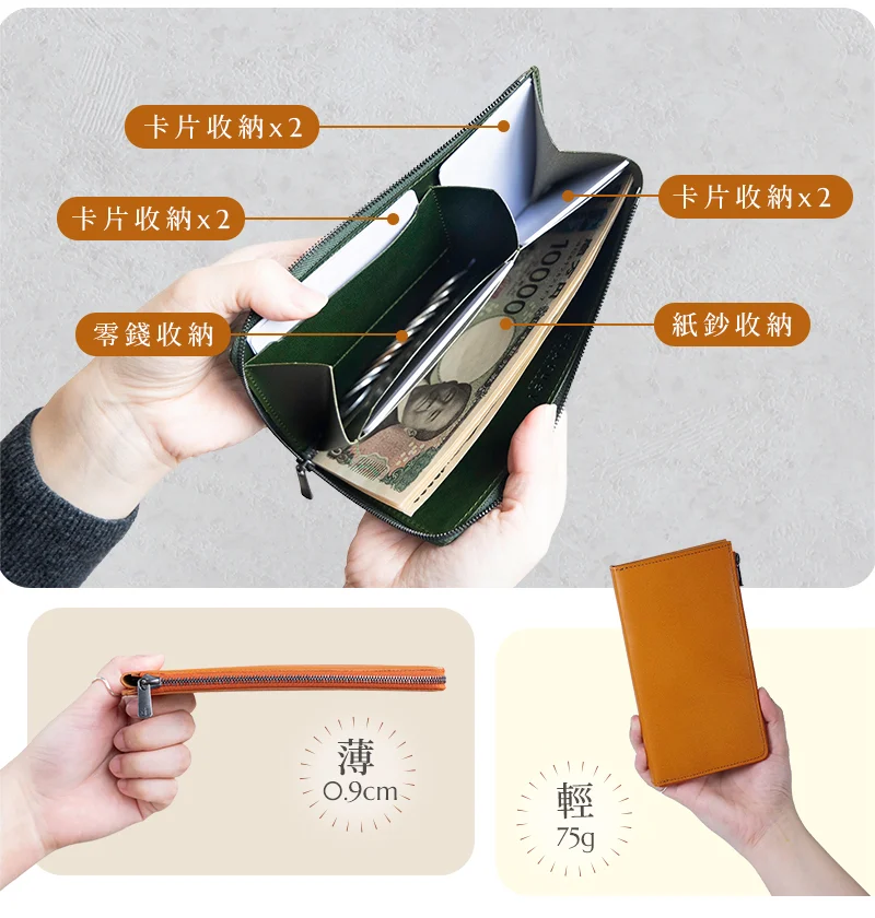 它延續長夾不折鈔的從容,卻以更薄、更輕的比例與更有秩序的收納,讓日常使用回到直覺