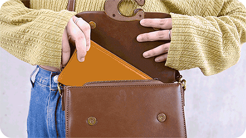 ▲ 如果您很少攜帶硬幣,可以將卡片、鑰匙等物品存放在零錢袋中,零錢袋大約可以容納五張額外的卡片。