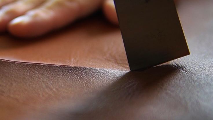 為了做出符合皮革,我們沒有直接挑選既有皮料,而是與日本的栃木皮革工坊一起,從「生皮」開始重新製作。