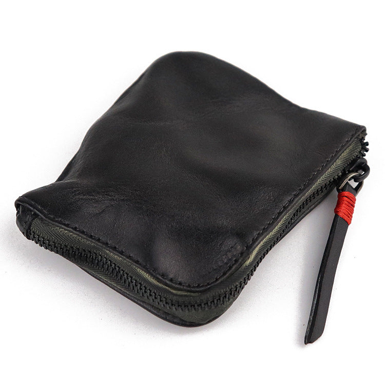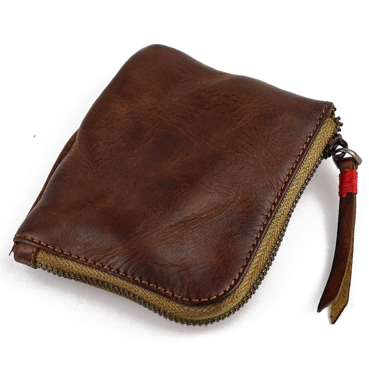 Vintage Leather Men's Small Change Wallet Brown Zipper Front Pocket Wallet For Men