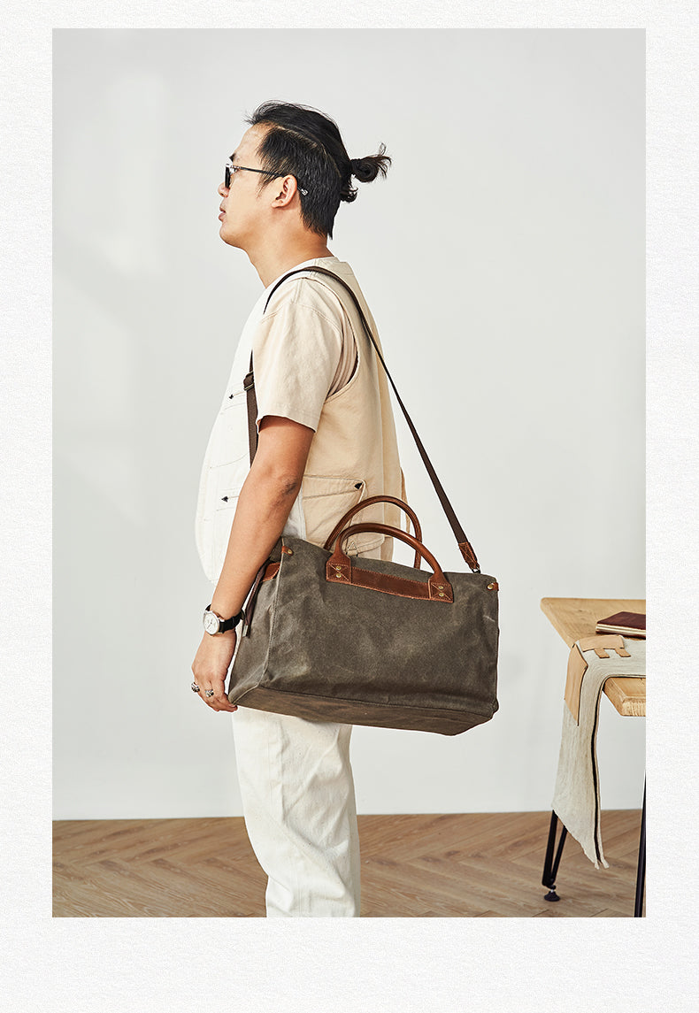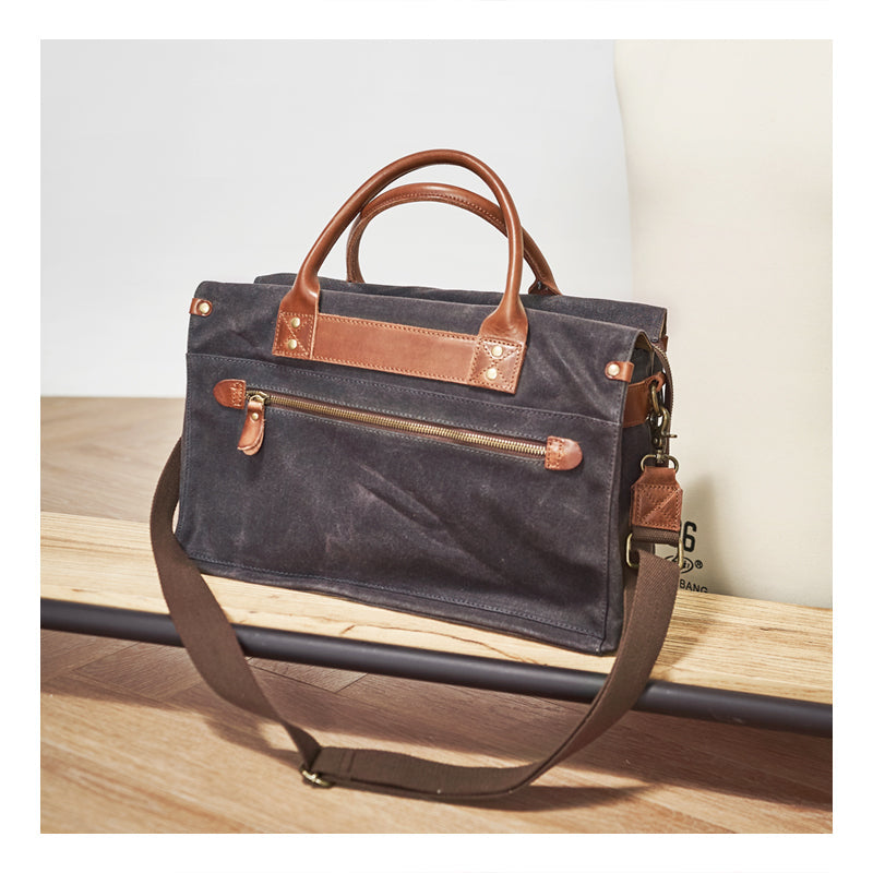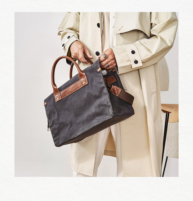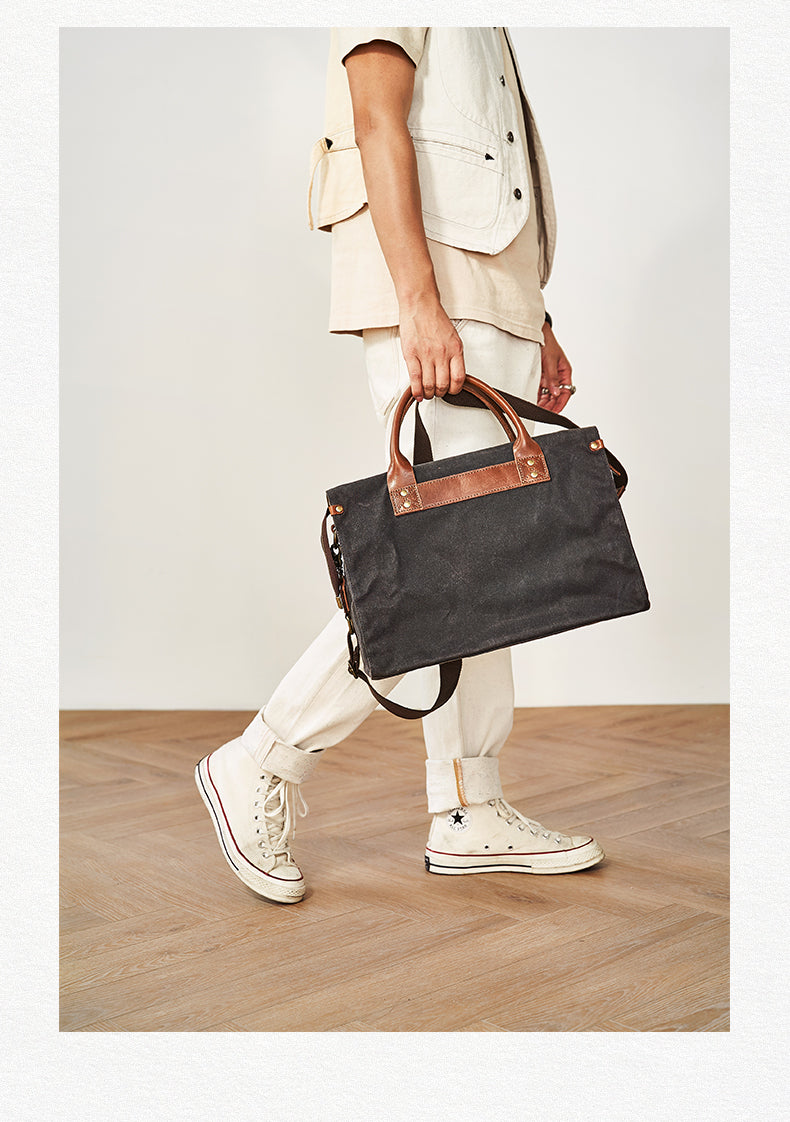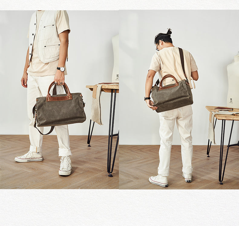 Style: Mens Gray Green Canvas 14inch Black Briefcase Handbag Work Bag Business Bag for Men
