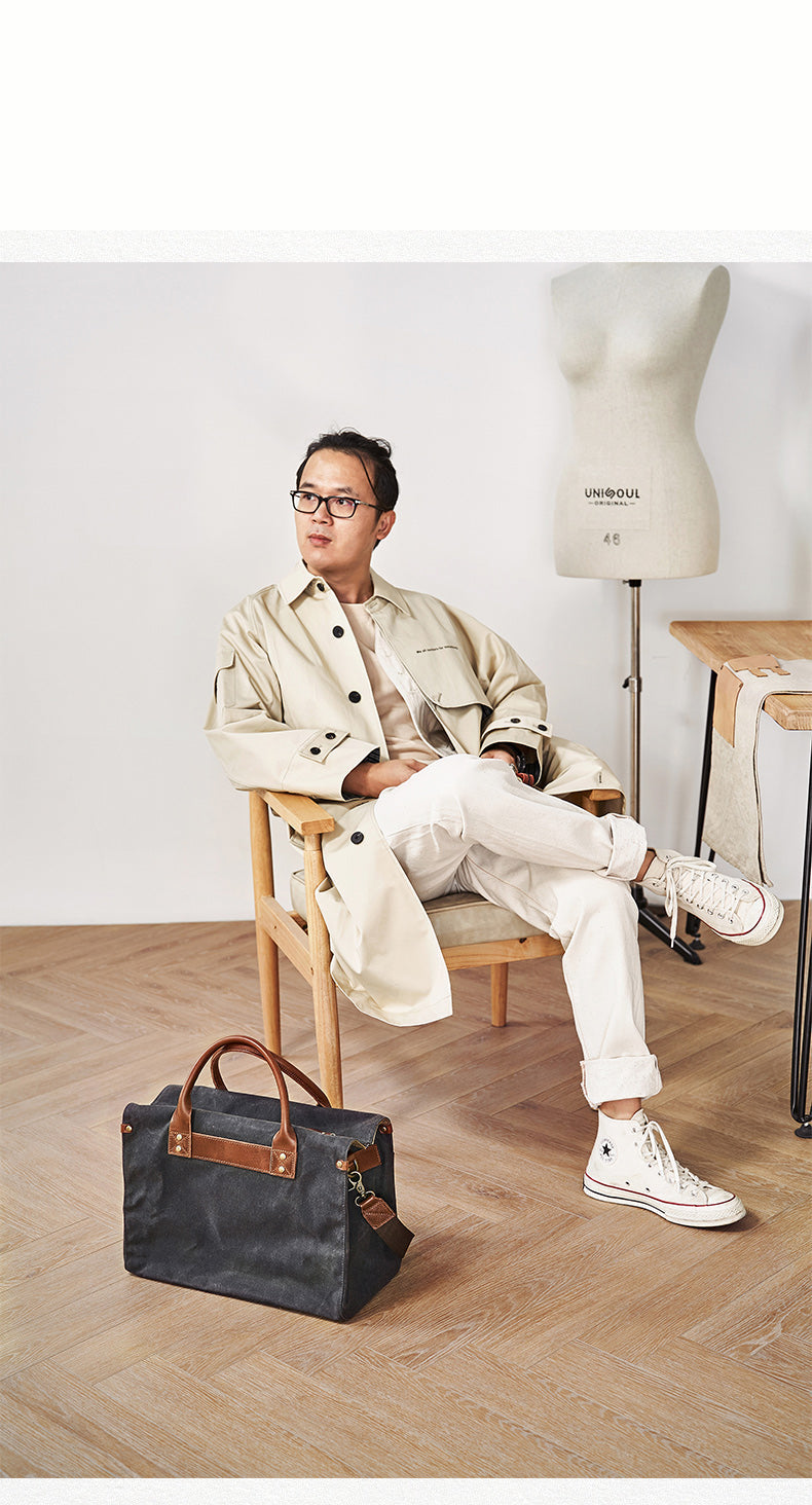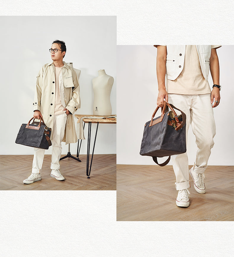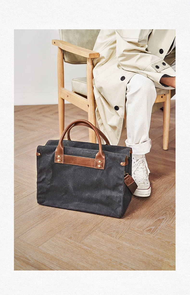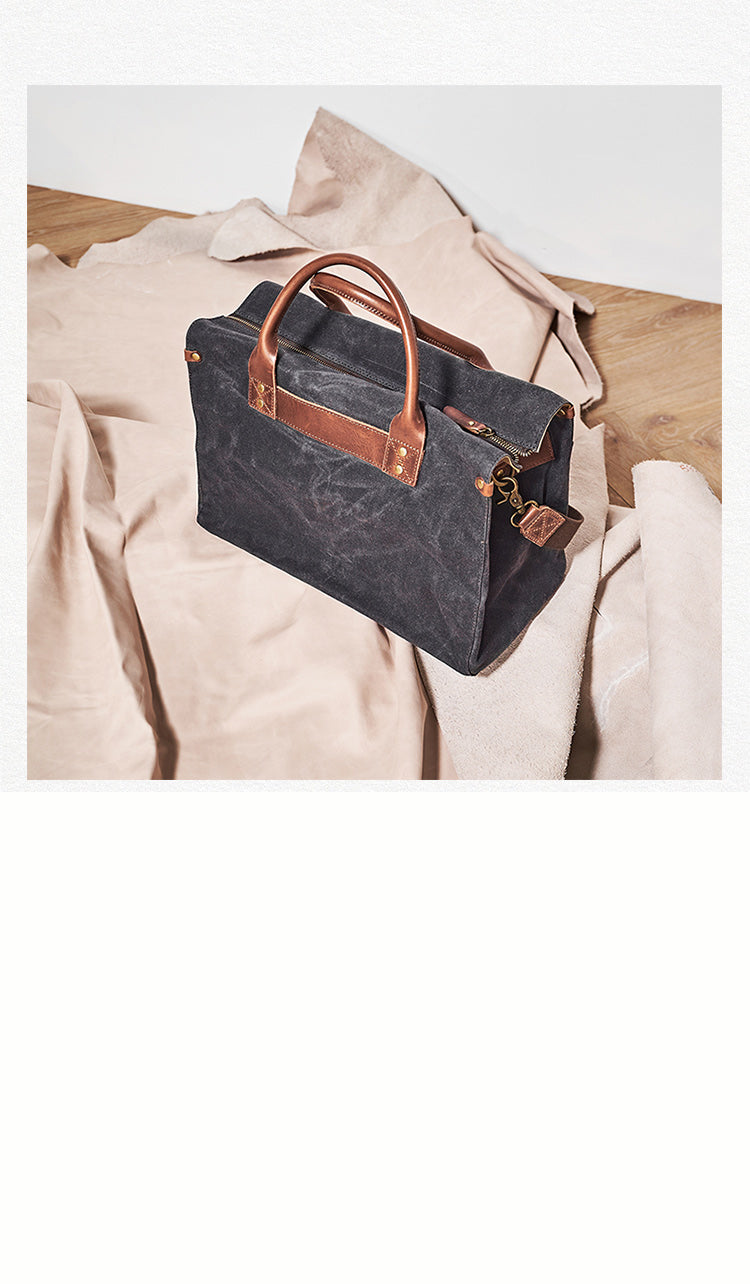 Style: Mens Gray Green Canvas 14inch Black Briefcase Handbag Work Bag Business Bag for Men