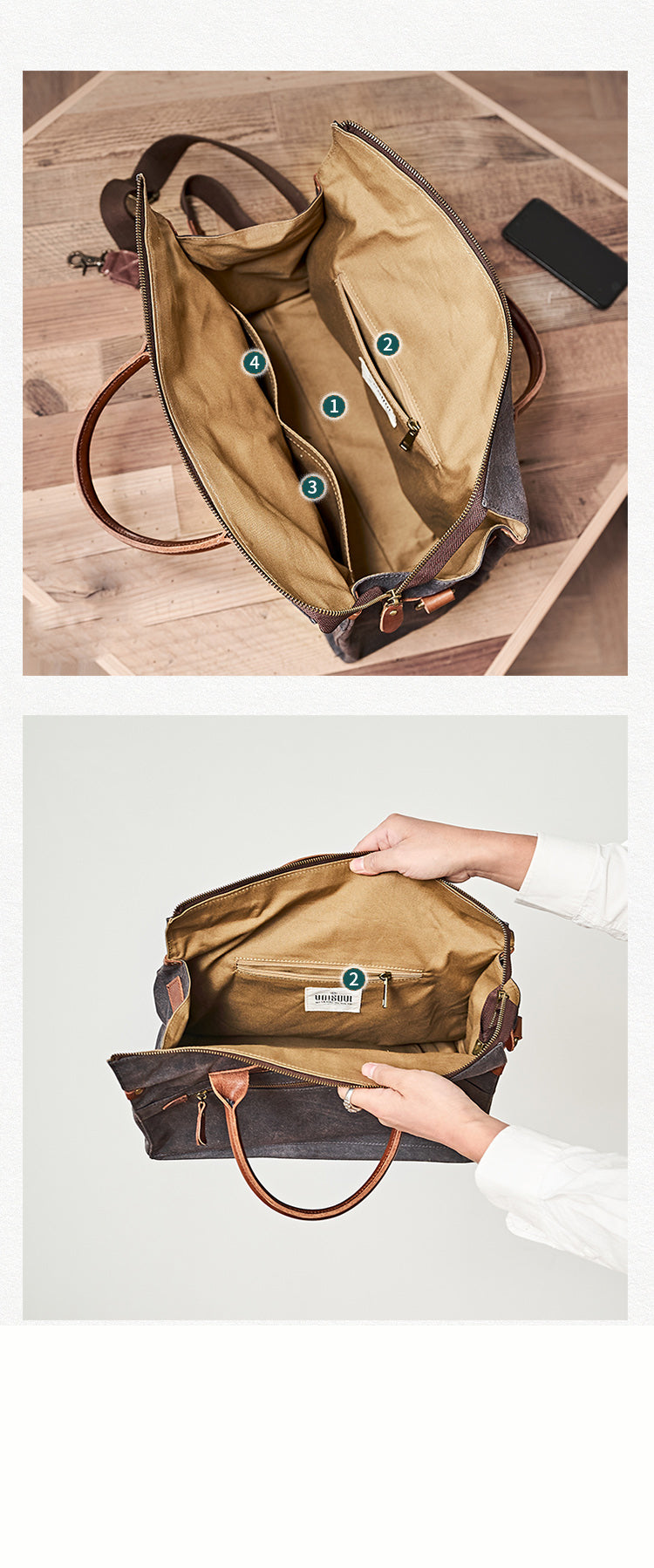 Slots:?1 main slot, 1 zipper slot, 1 wallet slot, 1 phone slot
