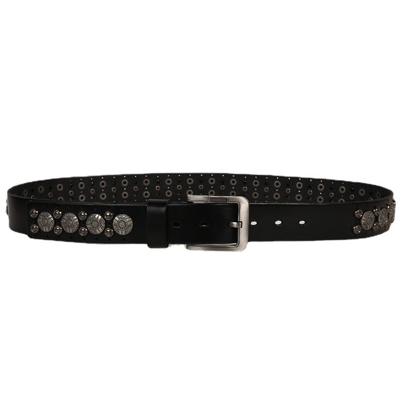 DEEPKEE original nubuck handmade full-grain genuine leather cowhide bag Navel nailhead vegetable tanned cowhide belt #211224