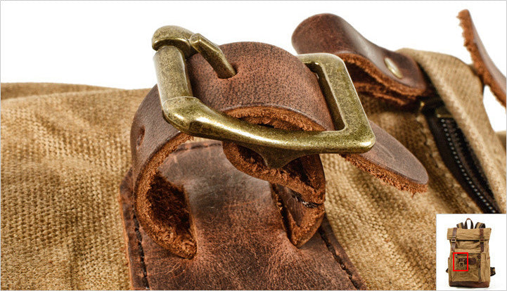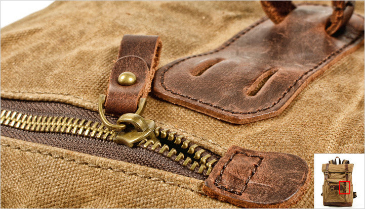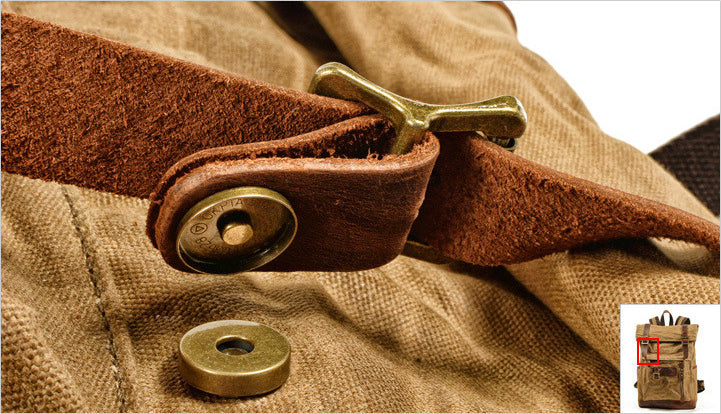 Design: Army Green Canvas Leather Mens Large Backpack School Backpack Canvas Travel Backpack For Men