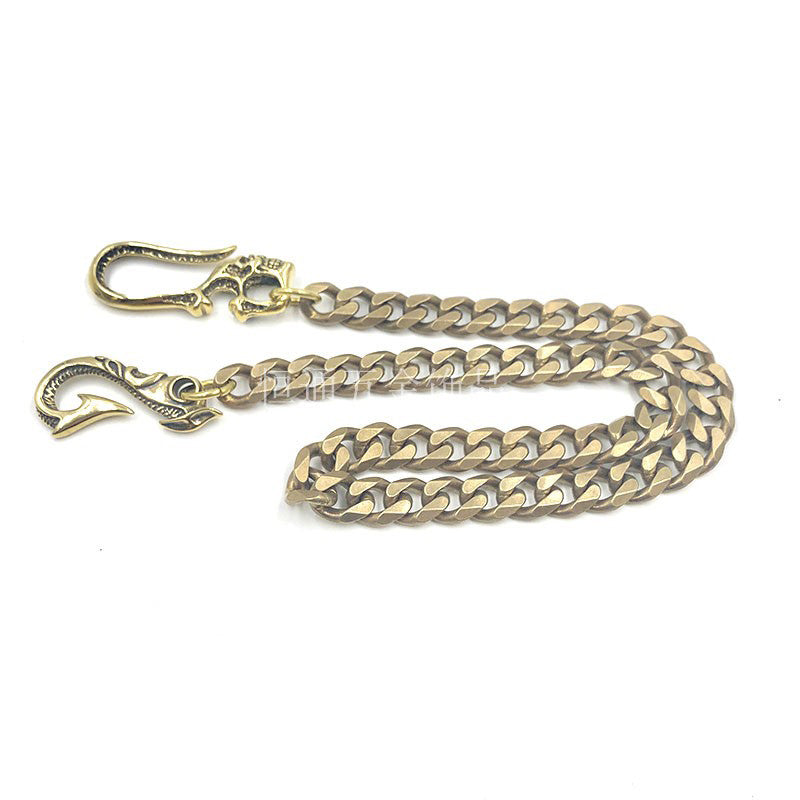 Design: Badass Gold Brass Skull 22'' Long Wallet Chain Biker Trucker Wallet Chain Pants Chain for Men