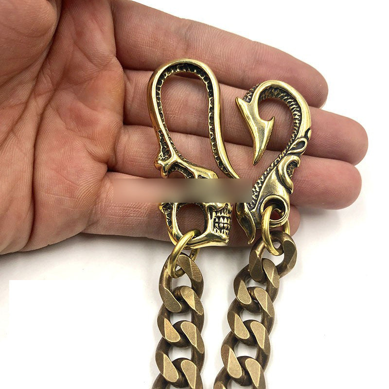 Badass Gold Brass Skull 22'' Long Wallet Chain Biker Trucker Wallet Chain Pants Chain for Men