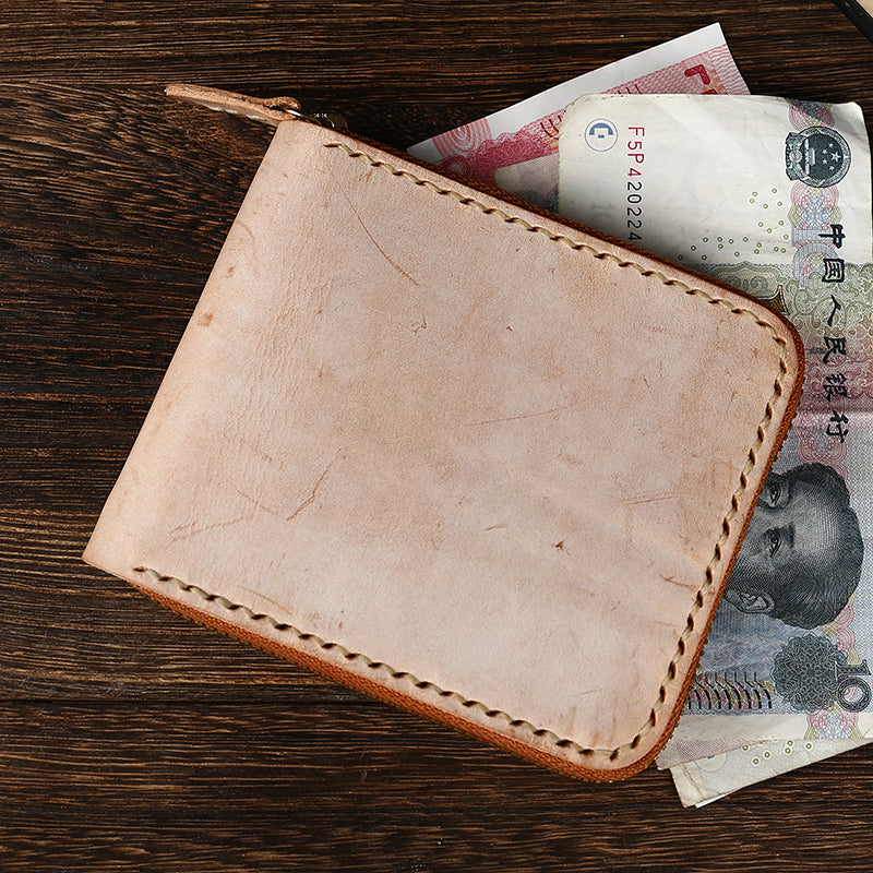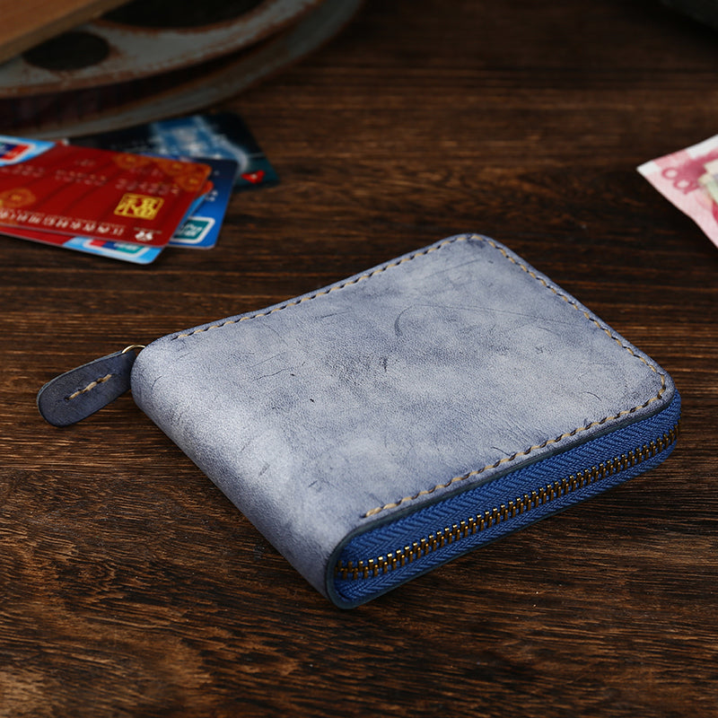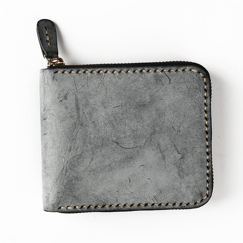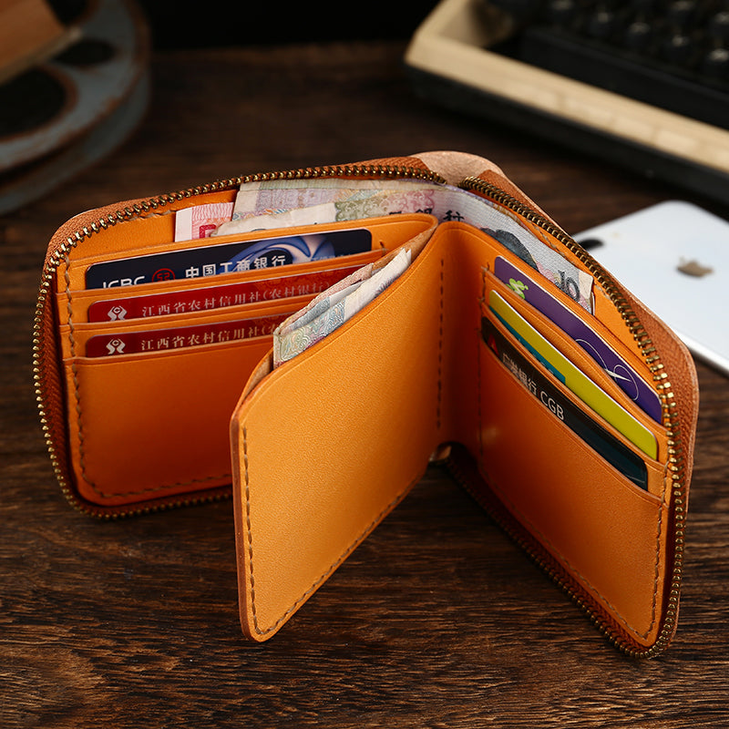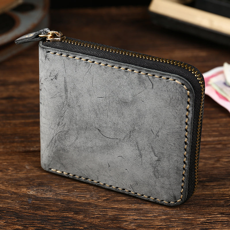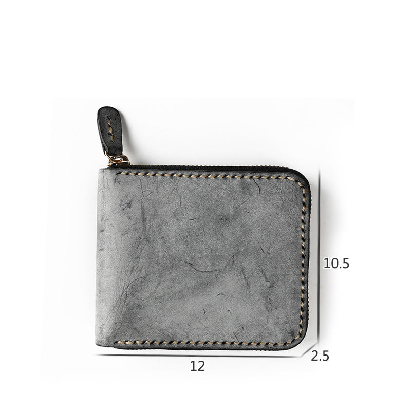 Retro Handmade Men's Zipper Black Billfold Wallet Brown Bifold Card Wallet Small Wallet for Men