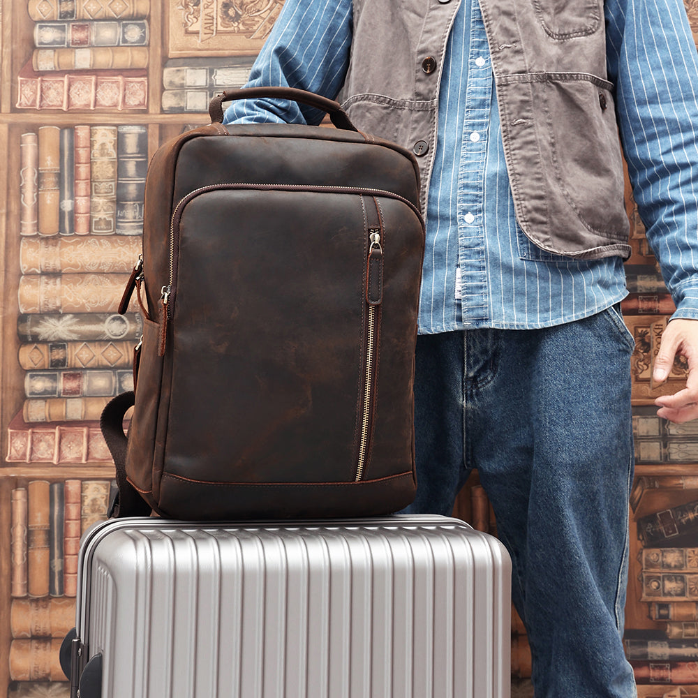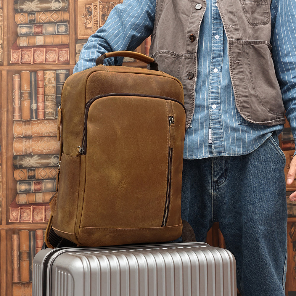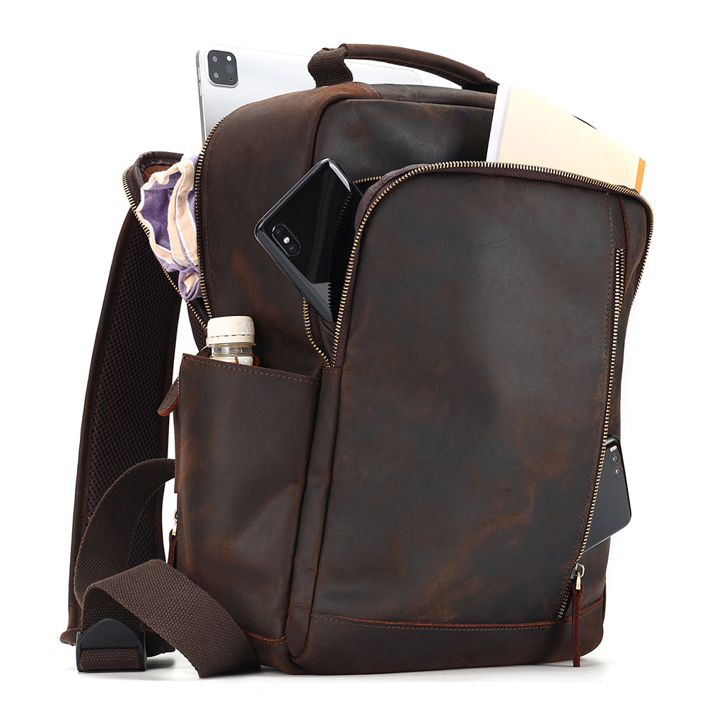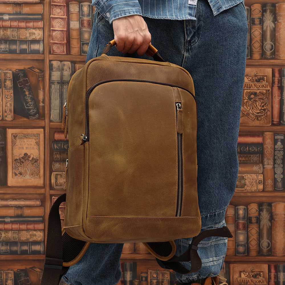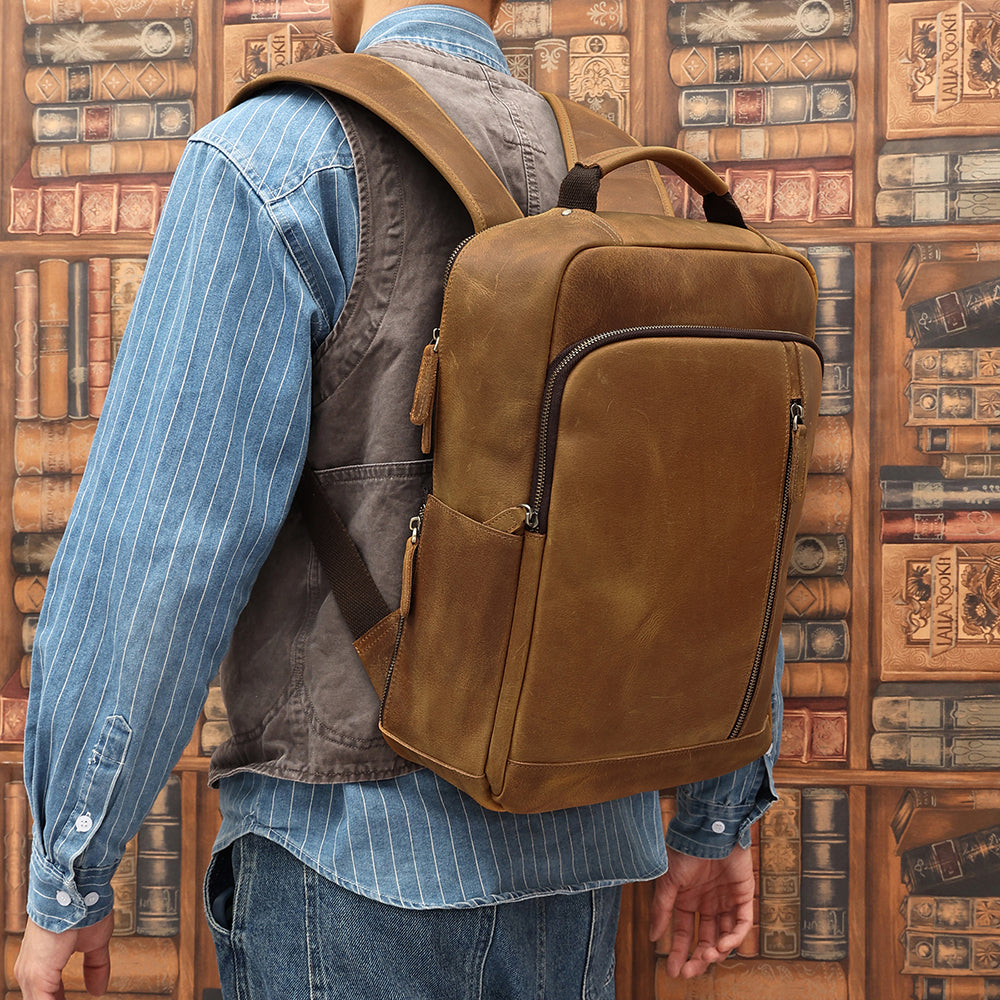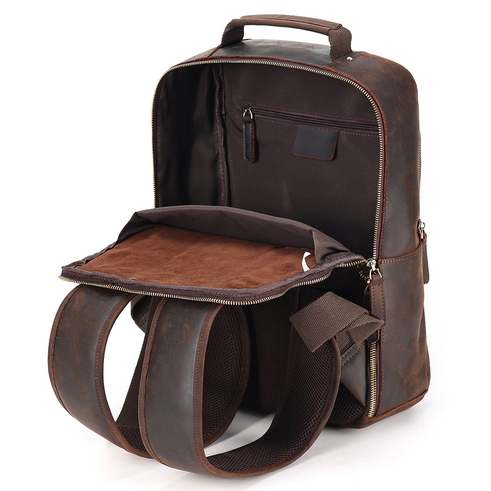 It's made with the finest premium top grain cowhide leather. That means only the very top layer of the animal hide is used. This is the most durable, thickest and most sought after cut of leather. It's difficult to manufacture but means The Square leather backpack will hold up for years to come. It's built to last a lifetime.