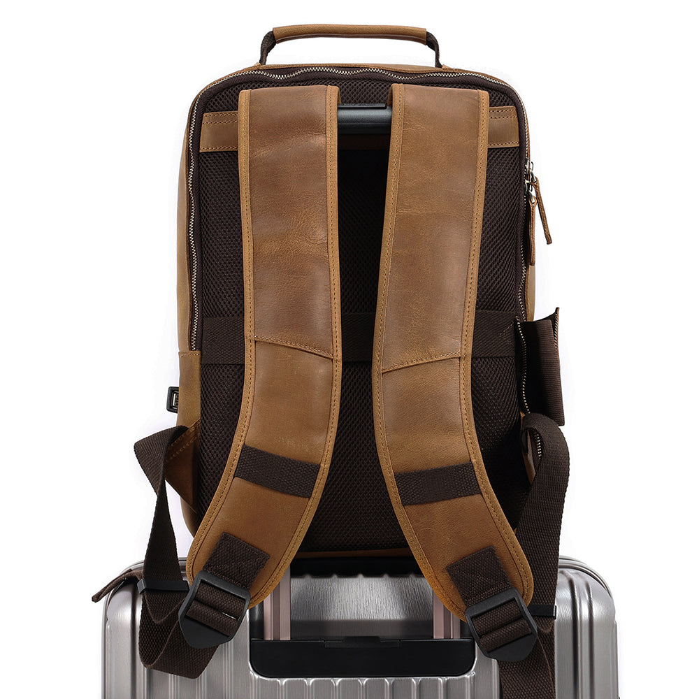 Also included is a luggage strap. That means you can attach this backpack to the handle of rolling suitcases. Or adjust the backpack straps over longer distances for supreme comfort. Either way, you'll know this backpack isn't just designed to impress with its looks - it's also thoughtfully made to impress with its convenience.