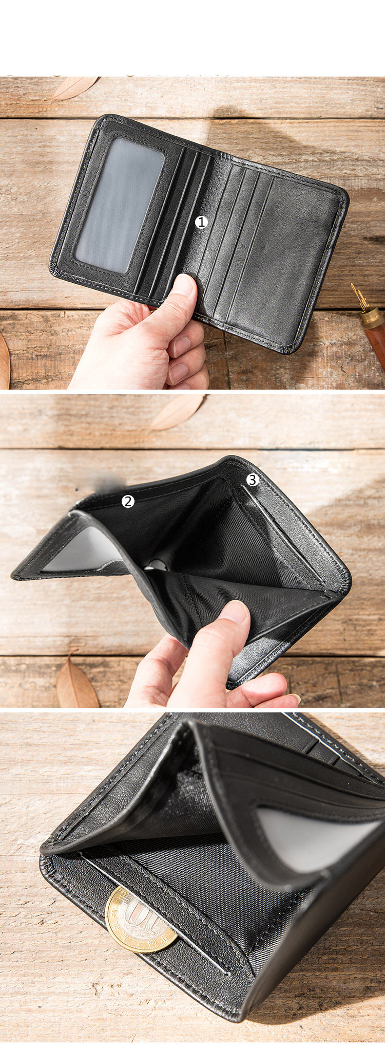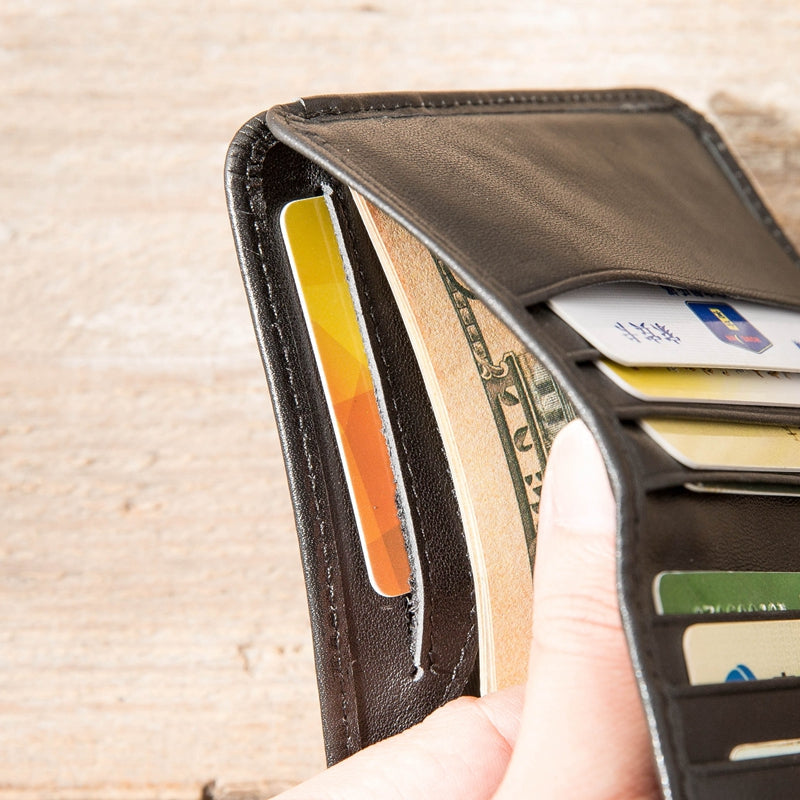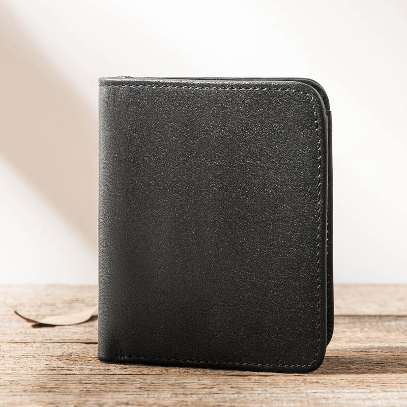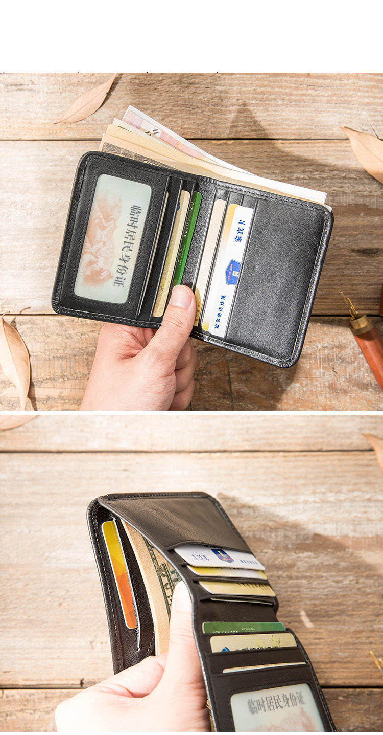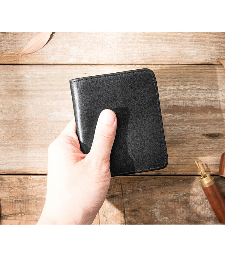 Design: Black Cool Leather Mens Small Wallet Multicard Wallet Bifold Vintage Ultra-thin Wallet for Men