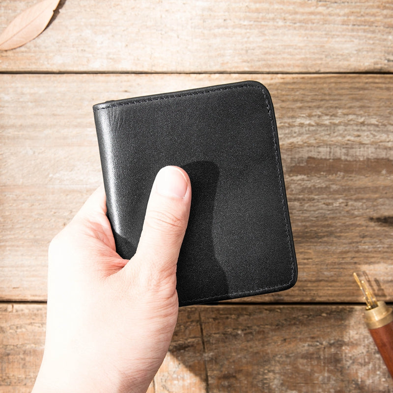 Style: Black Cool Leather Mens Small Wallet Multicard Wallet Bifold Vintage Ultra-thin Wallet for Men