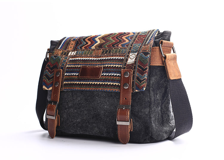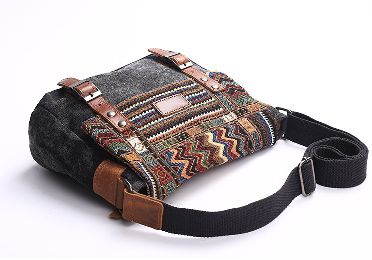 Design: Brown Waxed Canvas Leather Mens Dark Gray Shoulder Bag Small Backpack Messenger Bag for Men