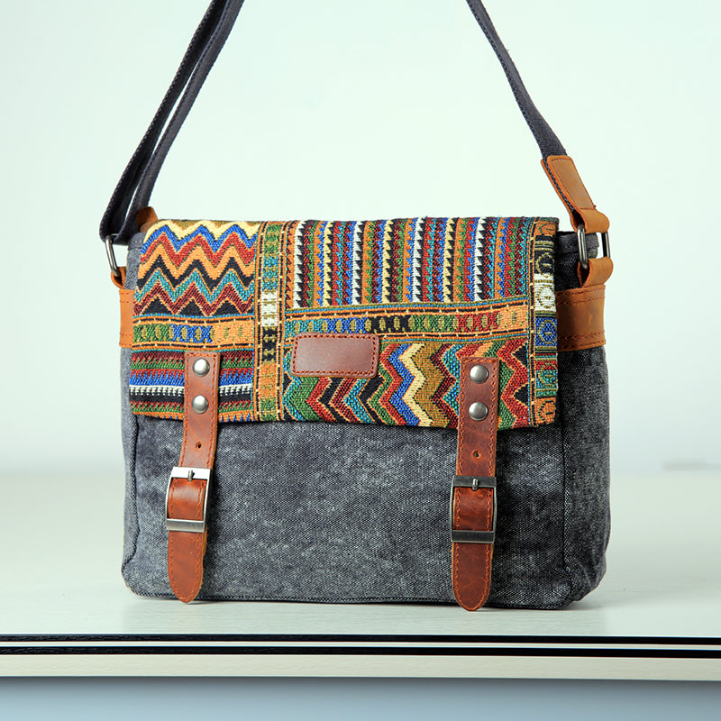 Gray Waxed Canvas Country Style Mens 11'' Side Bag Courier Bag Shoulder Bag Small Messenger Bag for Men