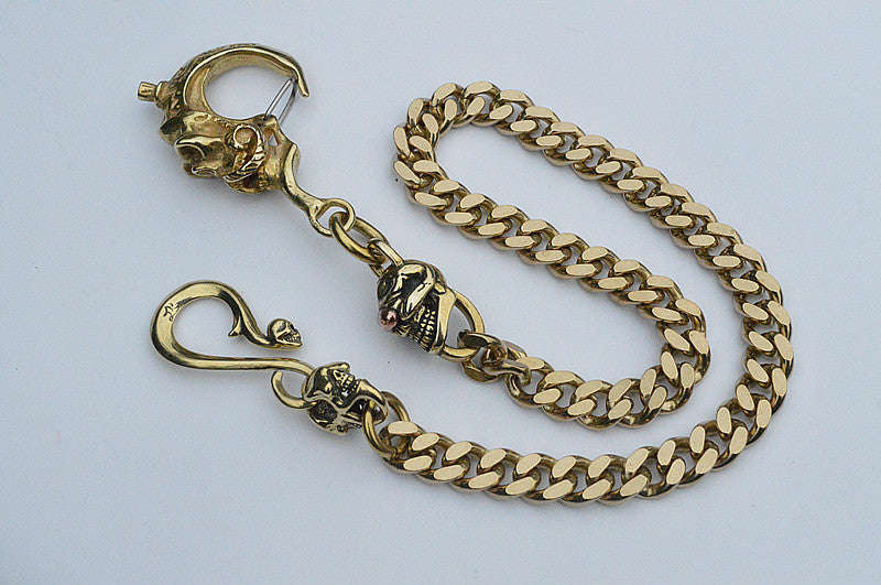 Badass Men's Gold Brass Skull Biker Wallet Chain Key Chain Pants Chain For Men