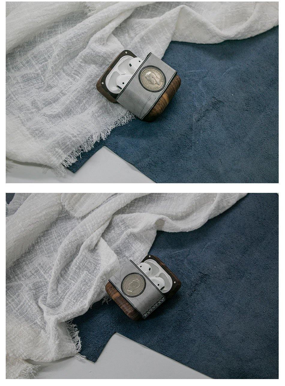 Style: Handmade Leather Wood AirPods 1,2 Case with Shilling Custom Leather AirPods 1,2 Case Airpod Case Cover