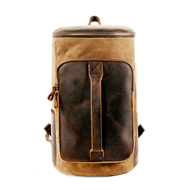• Cool Waxed Canvas Black Leather Mens 15.6¡®¡¯ Barrel Green Backpack Travel Backpack Hiking Backpack for Men