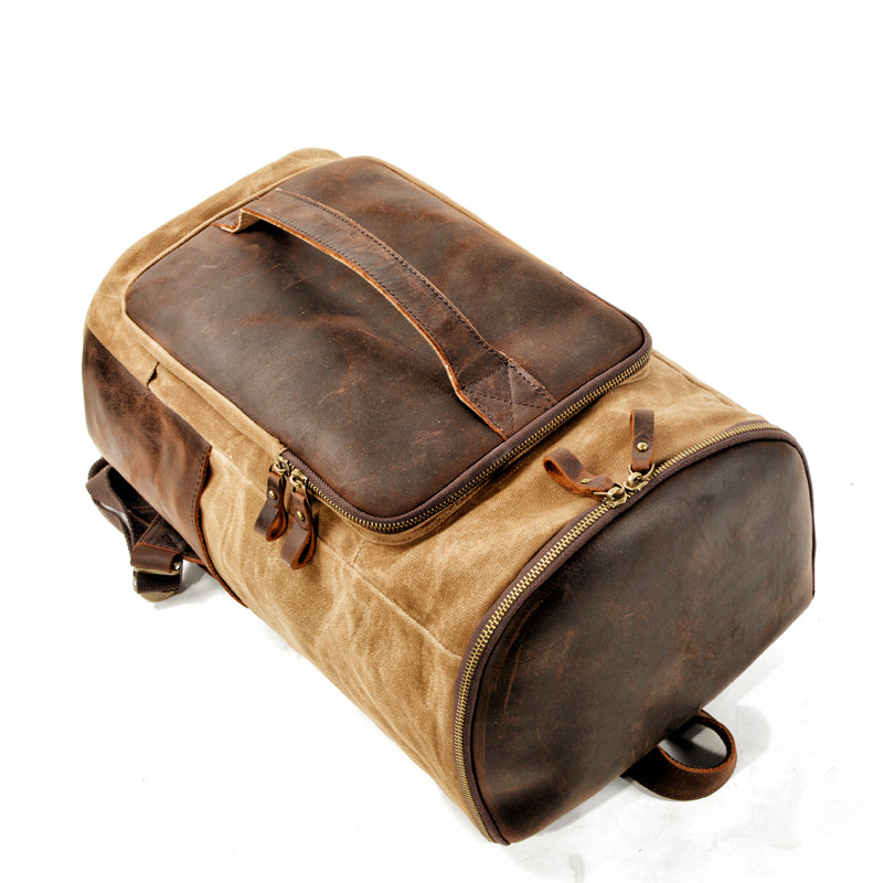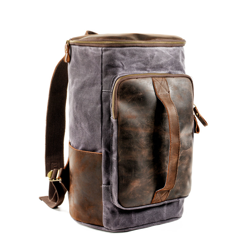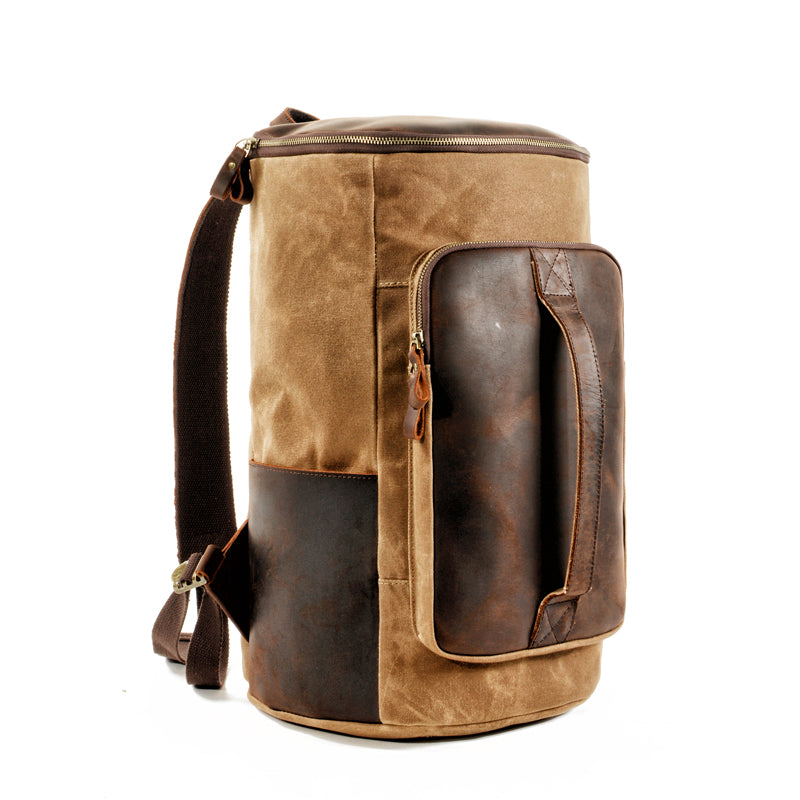 Design: Cool Waxed Canvas Black Leather Mens 15.6¡®¡¯ Barrel Green Backpack Travel Backpack Hiking Backpack for Men
